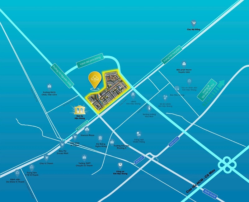 Dự án này còn phải tọa lạc tại vị trí "vàng" mang tính biểu tượng và chiến lược. Đó là những nơi nằm ngay tại cửa ngõ huyết mạch của tỉnh, đối diện trung tâm hành chính - chính trị đầu não, đồng thời là điểm giao thoa vàng nơi các trục quốc lộ trọng yếu và tuyến cao tốc tỷ đô tương lai đi qua, lại được dòng kênh Xáng Xà No lịch sử ôm trọn, tạo thành một tâm điểm kết nối giao thương đa phương tiện độc đáo.