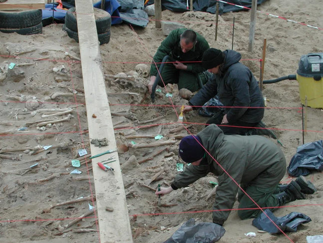 Ngôi mộ tập thể ở Vilnius đang được khai quật vào năm 2002. Ảnh: Đại học Aix-Marseille/CNRS/EFS