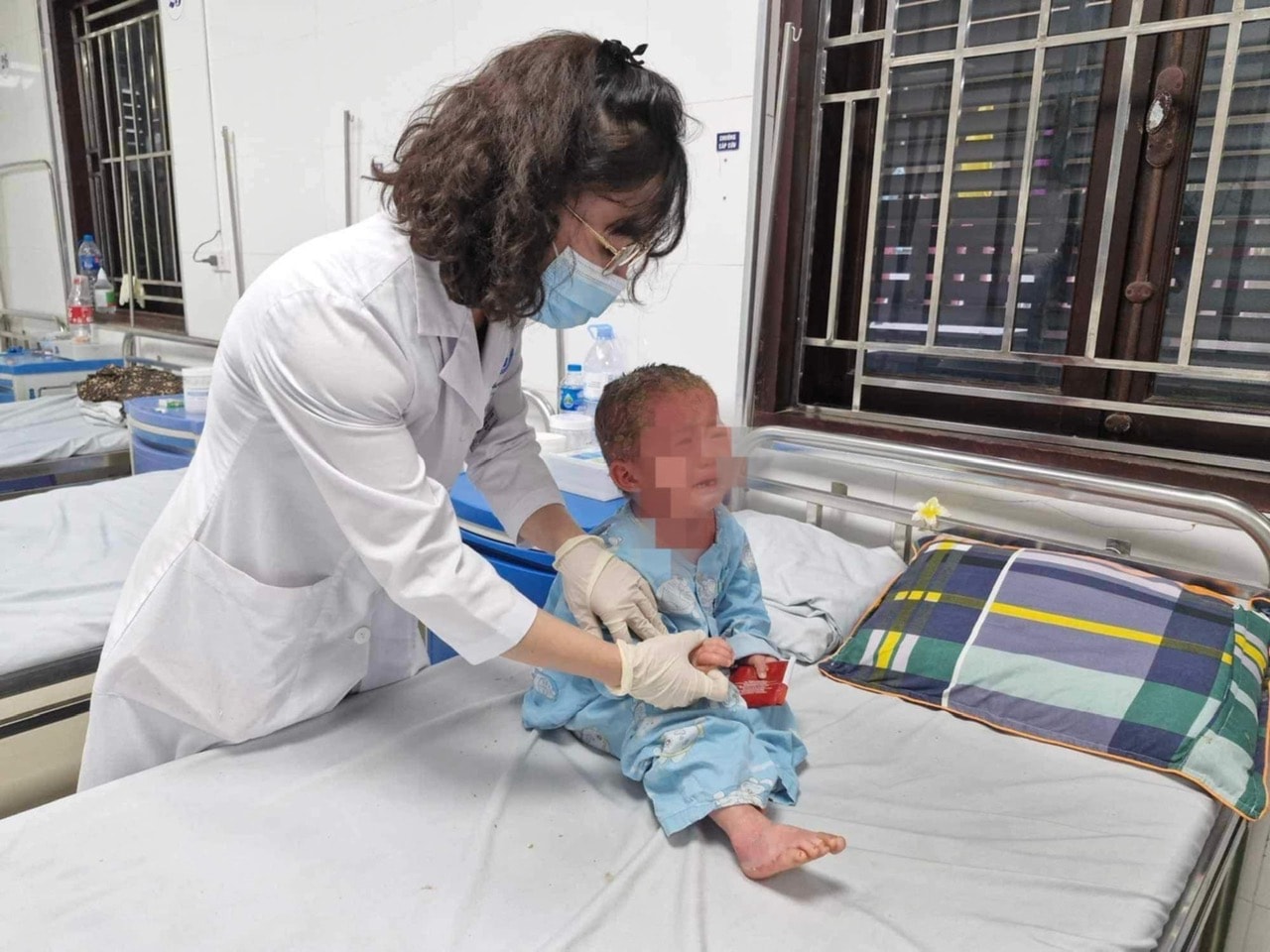 Bệnh nhi bị bệnh vảy nến điều trị tại Bệnh viện Da liễu trung ương. Ảnh: T.T