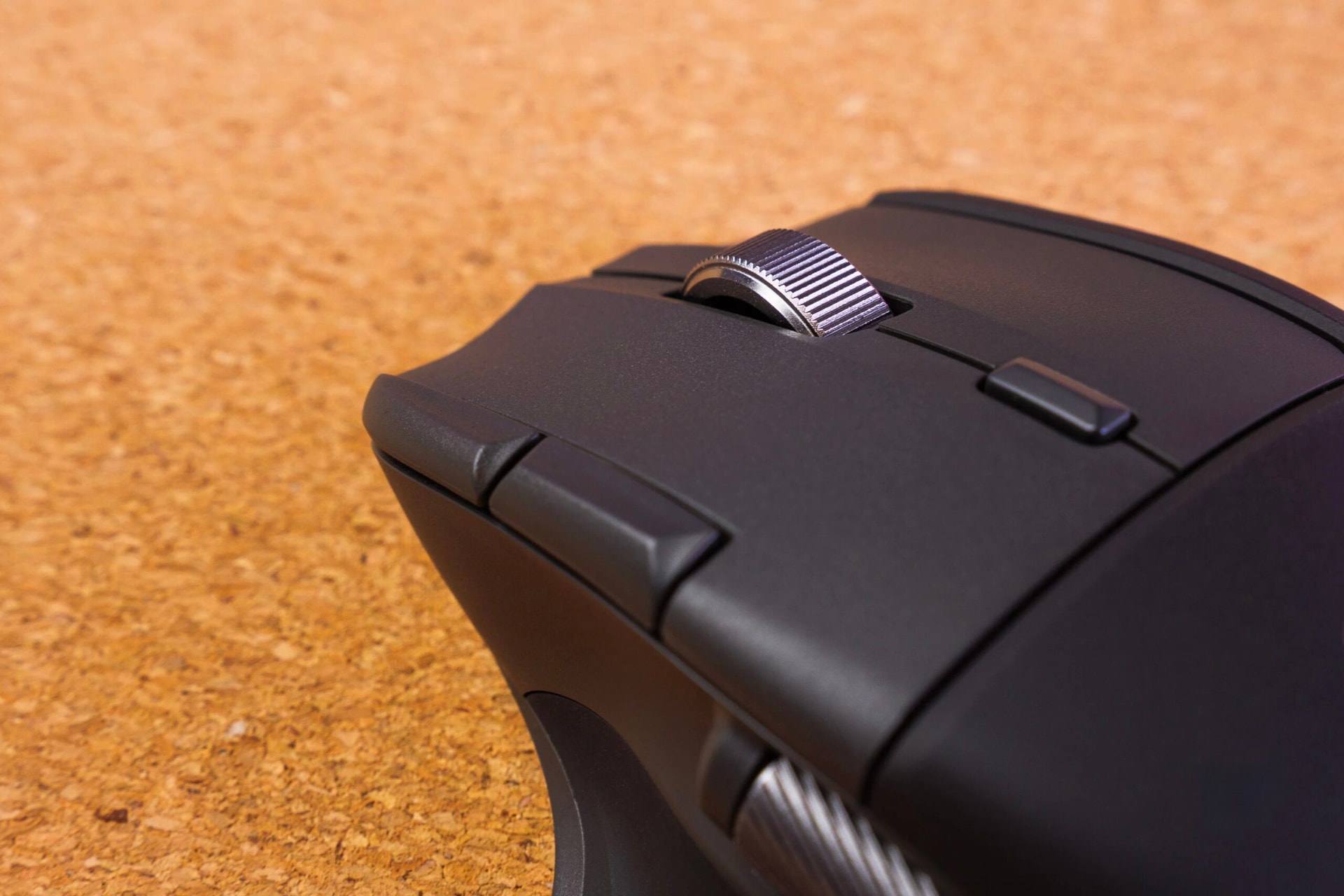 Ngoài ra, chuột còn sở hữu bánh xe cuộn ngang thứ hai đặt ngay vị trí ngón cái. Bánh xe này có độ kháng lực vừa phải, giúp điều hướng trang web hoặc bảng tính theo chiều ngang một cách chính xác mà không sợ nhấn nhầm.