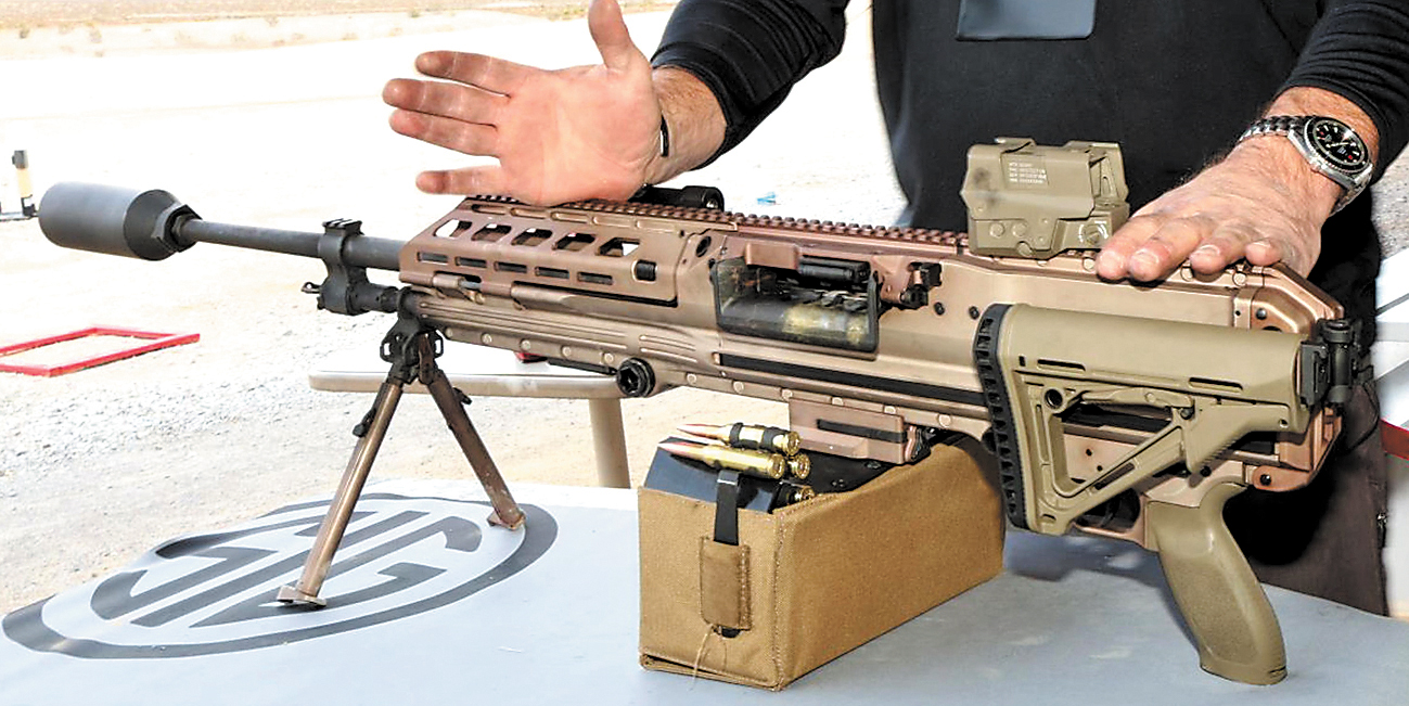 Năm 2020, Công ty SIG Sauer công bố mẫu súng máy hạng nhẹ MG338 được Bộ Tư lệnh Tác chiến đặc biệt Mỹ lựa chọn. Súng sử dụng đạn Magnum với đầu đạn nặng, cỡ nòng khoảng 8,6 mm, cho tầm bắn xa và uy lực lớn. Đồng thời, MG338 có thể thay nòng để sử dụng đạn 7,62 mm, tăng tính linh hoạt trong tác chiến.