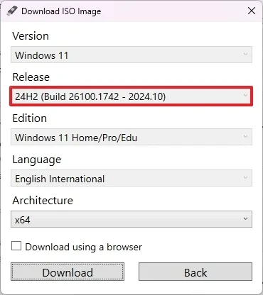 Tải trực tiếp tệp ISO Windows 11 trong giao diện công cụ.