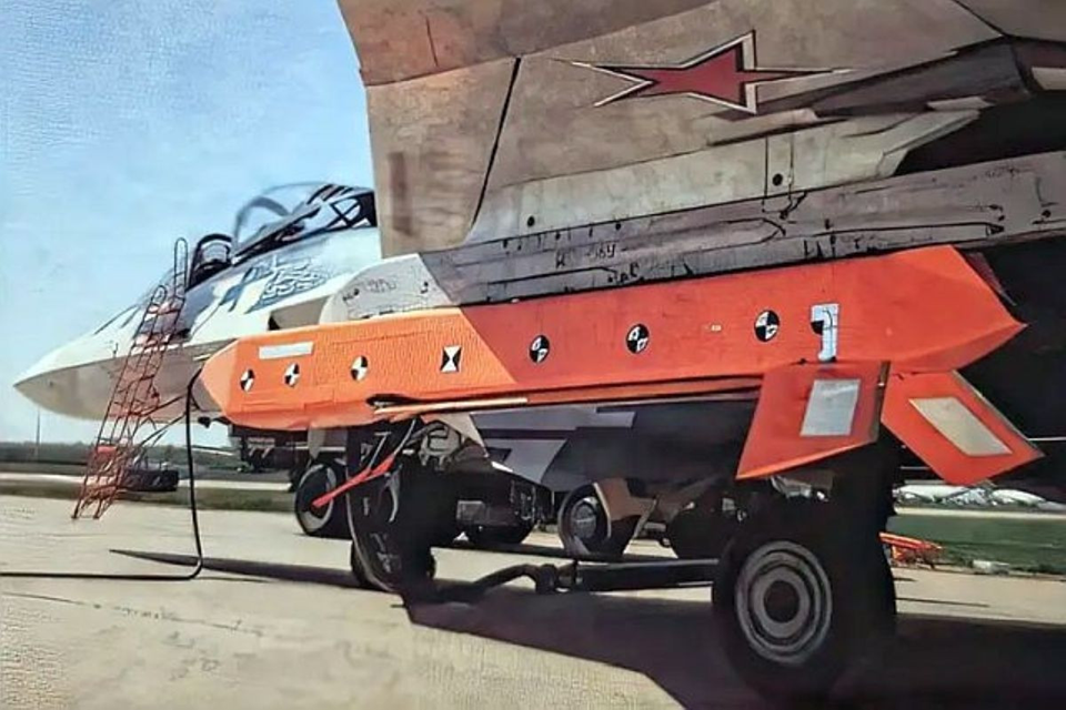 Cơ quan tình báo Ukraine cho biết Nga đã triển khai S-71K Kover, một tên lửa hành trình phóng từ trên không có tầm bắn khoảng 300 km, được thiết kế nhằm mở rộng khả năng tấn công của tiêm kích Su-57 và có thể tích hợp với máy bay không người lái. Ảnh: HUR/Army Recognition.