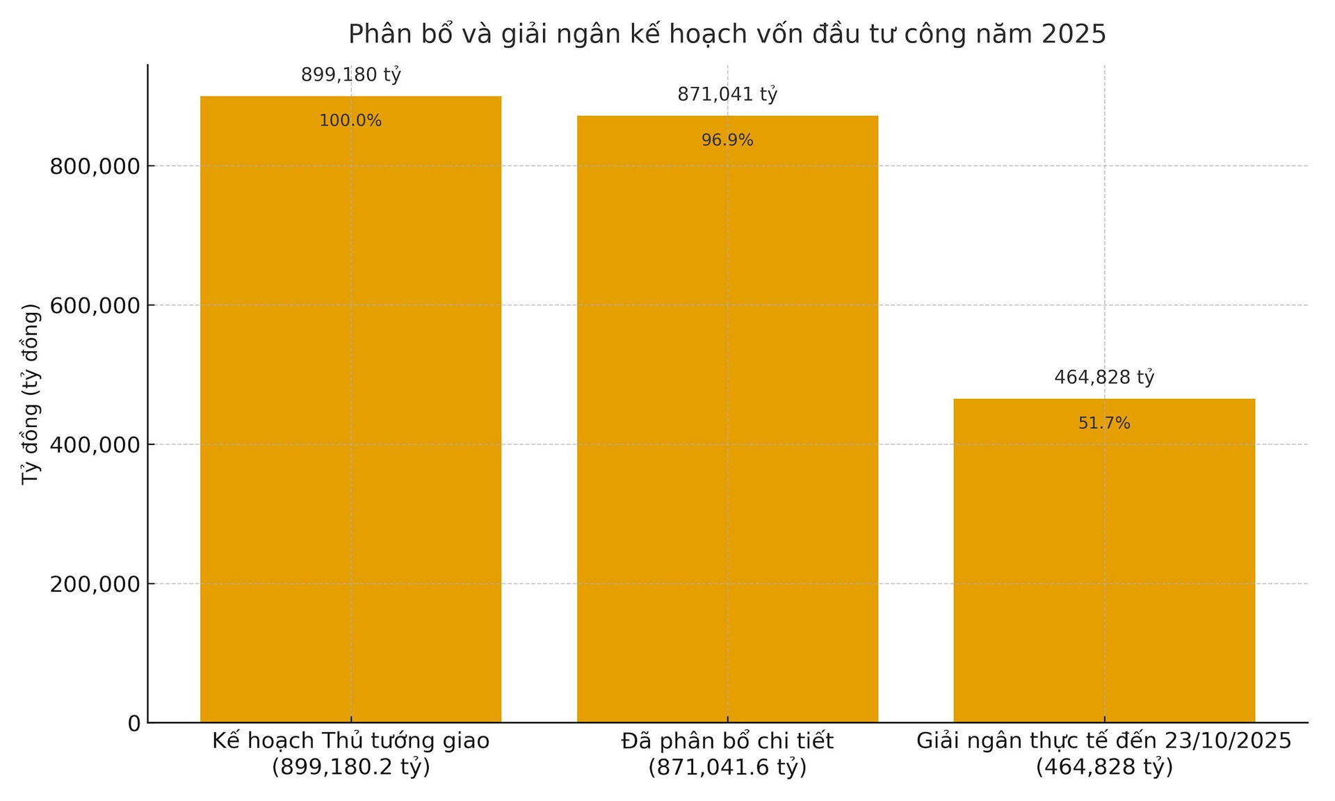 Tiến độ phân bổ và giải ngân đến ngày 23/10/2025. Biểu đồ: Thùy Anh