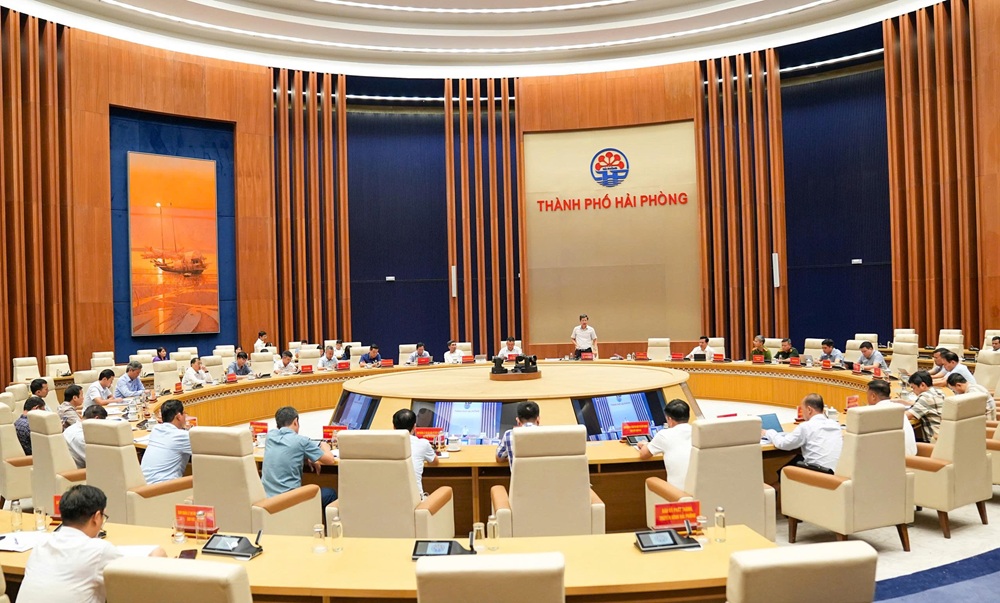 Toàn cảnh phiên họp tháng 10 của UBND TP. Hải Phòng về điều chỉnh kịch bản giải ngân kế hoạch vốn đầu tư công năm 2025 đến hết niên độ ngân sách diễn ra chiều 20/10