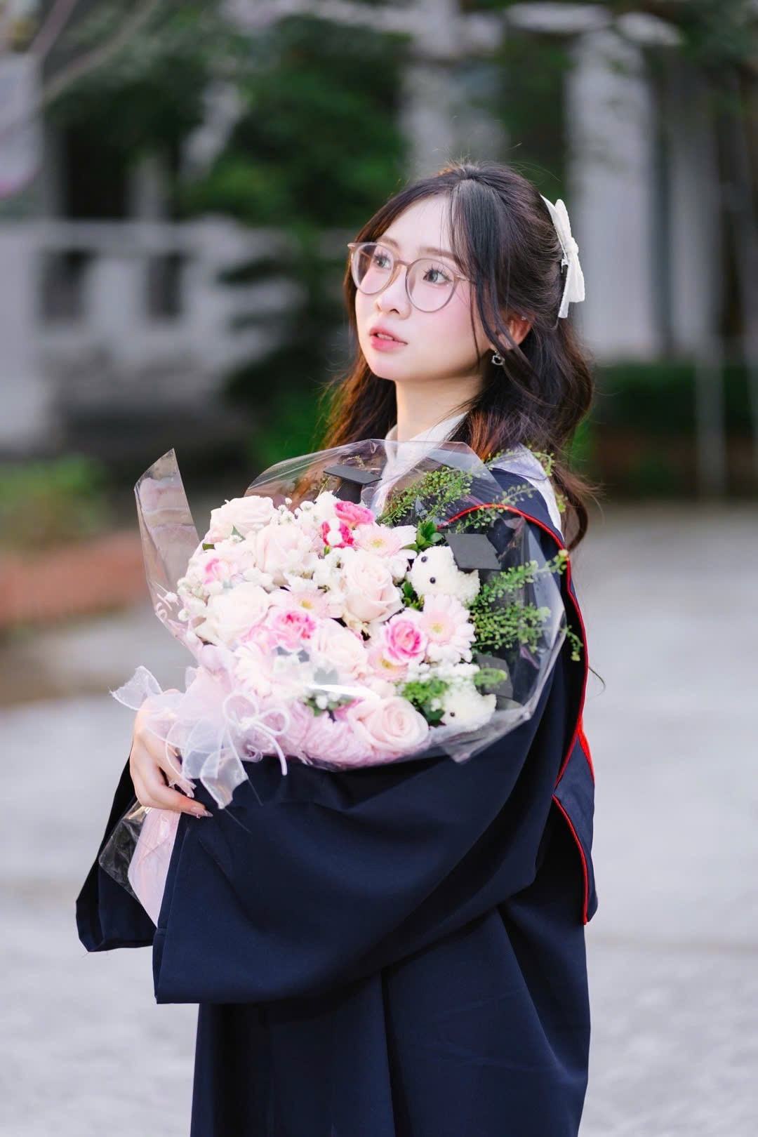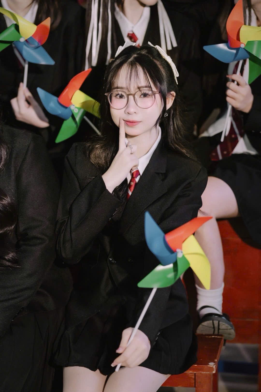 Thùy Dương chụp kỷ yếu cùng lớp.