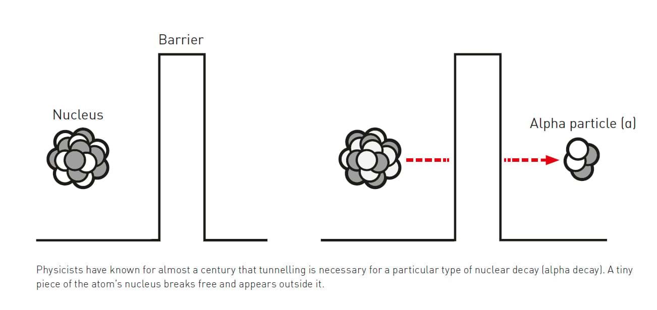 Các nhà vật lý đã biết trong gần một thế kỷ qua rằng hiệu ứng đường hầm cần thiết cho một loại phân rã hạt nhân đặc biệt (phân rã Alpha). Một mảnh nhỏ của hạt nhân nguyên tử thoát ra và xuất hiện bên ngoài nó.