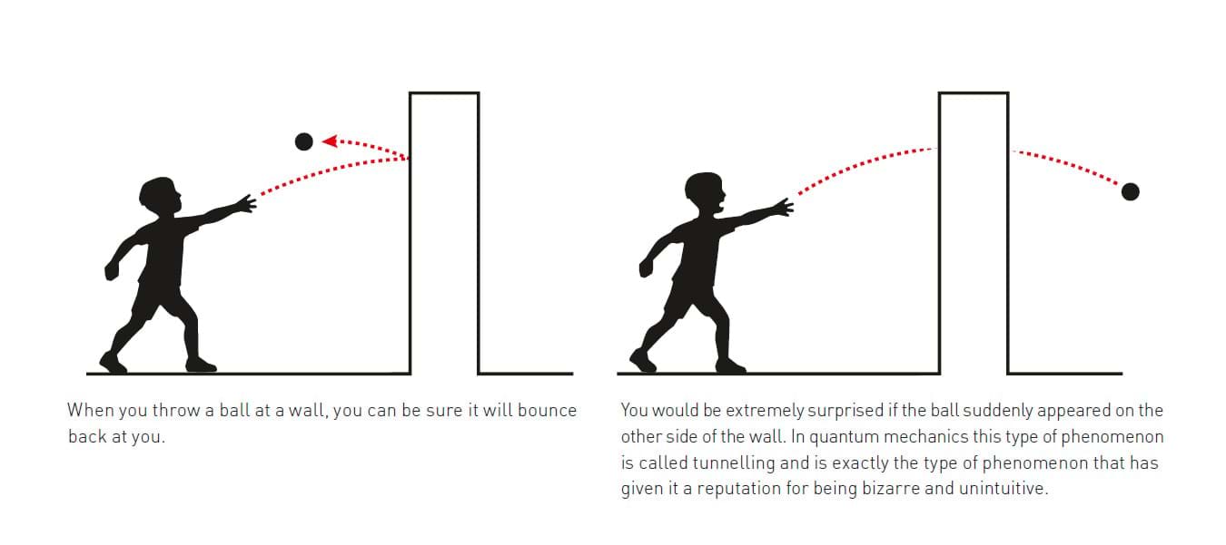 Khi ném một trái banh vào một bức tường thông thường nó sẽ nẩy bật trở lại phía người ném. Nhưng bạn sẽ rất ngạc nhiên nếu bỗng dưng trái banh lại xuất hiện phía bên kia bức tường. Trong cơ học lượng tử, đậy là hiện tượng có tên gọi là “đường hầm”. Một hiện tượng kỳ lạ và khó hiểu.