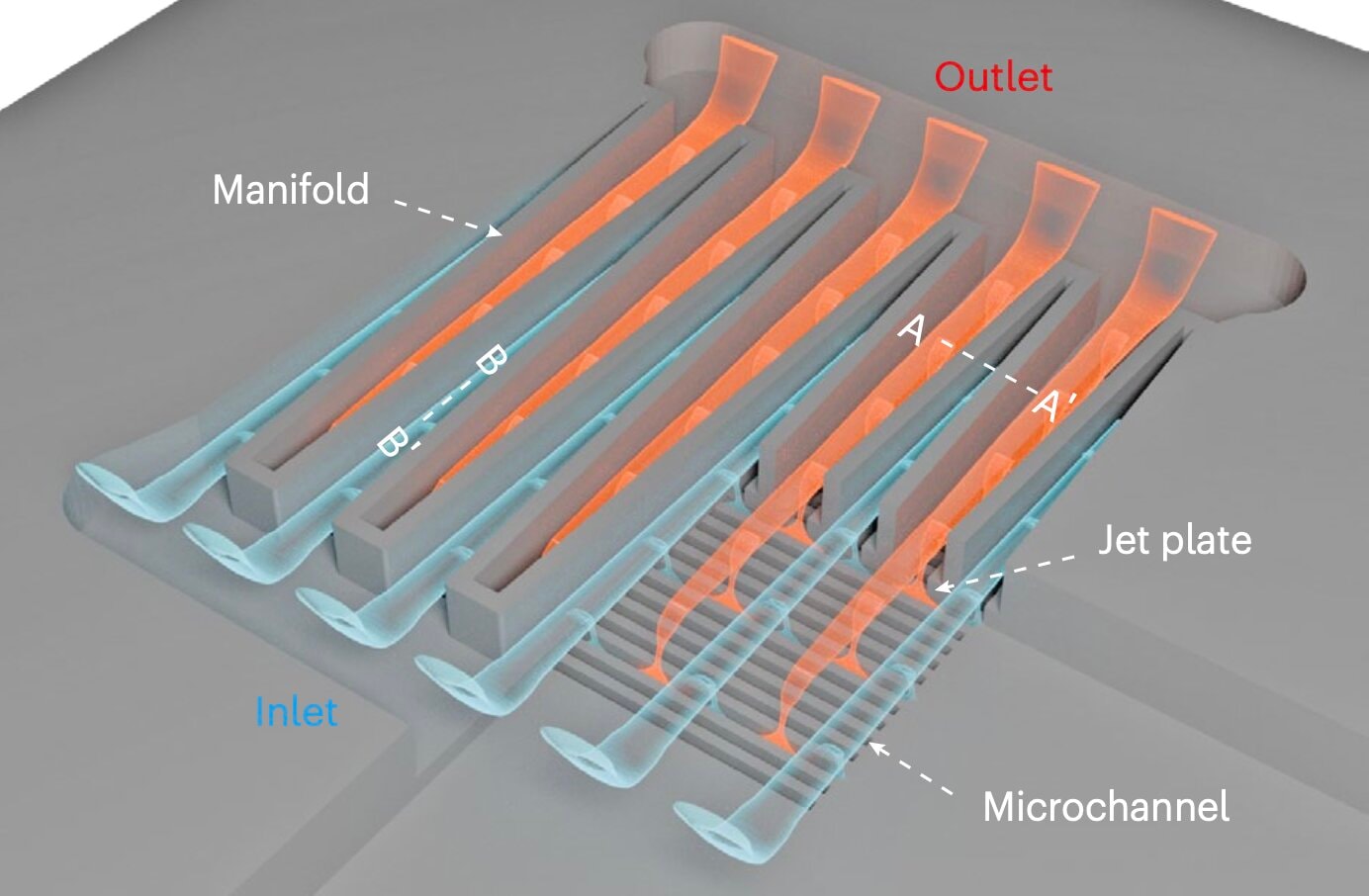 Hệ thống tản nhiệt 3 lớp có khả năng loại bỏ 3.000W công suất nhiệt khỏi mỗi centimet vuông diện tích bề mặt của chip, trong khi chỉ tiêu tốn 0,9W công suất điện để chạy bơm trên mỗi centimet vuông diện tích làm mát