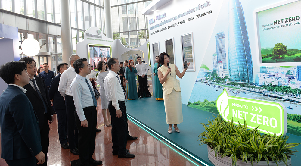 Các đại biểu tham quan gian hàng triển lãm tại sự kiện Tuần lễ Tài chính và Công nghệ Đà Nẵng năm 2025.