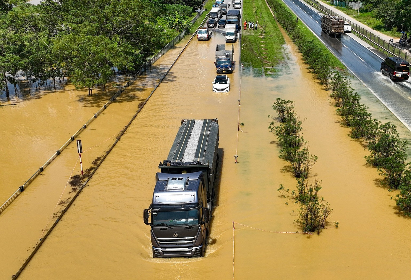 Nước ngập sâu trên cao tốc Hà Nội - Thái Nguyên những ngày qua. Ảnh: PV