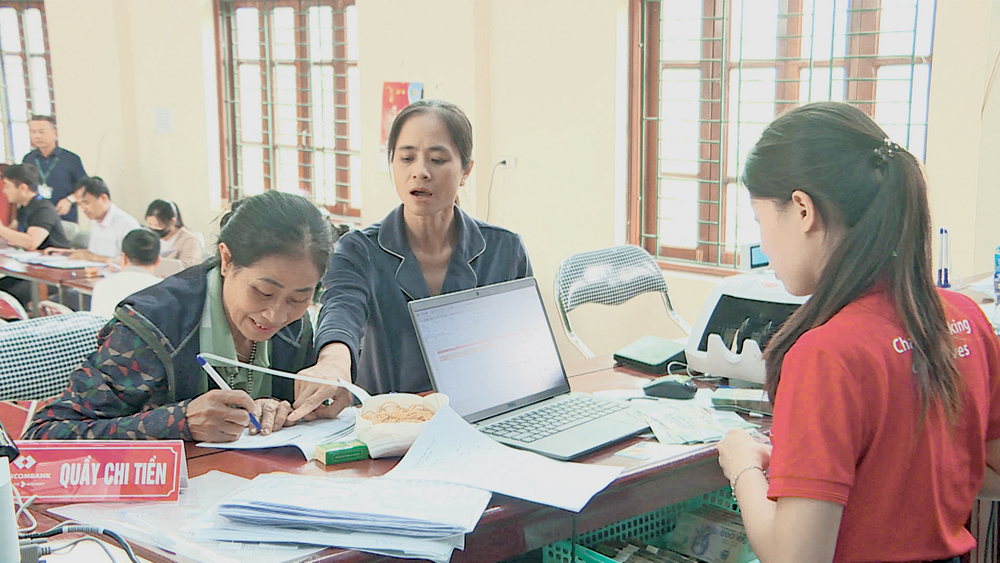 Người dân thôn Khoái Khê, xã Nhân Thắng làm thủ tục nhận tiền bồi thường giải phóng mặt bằng.