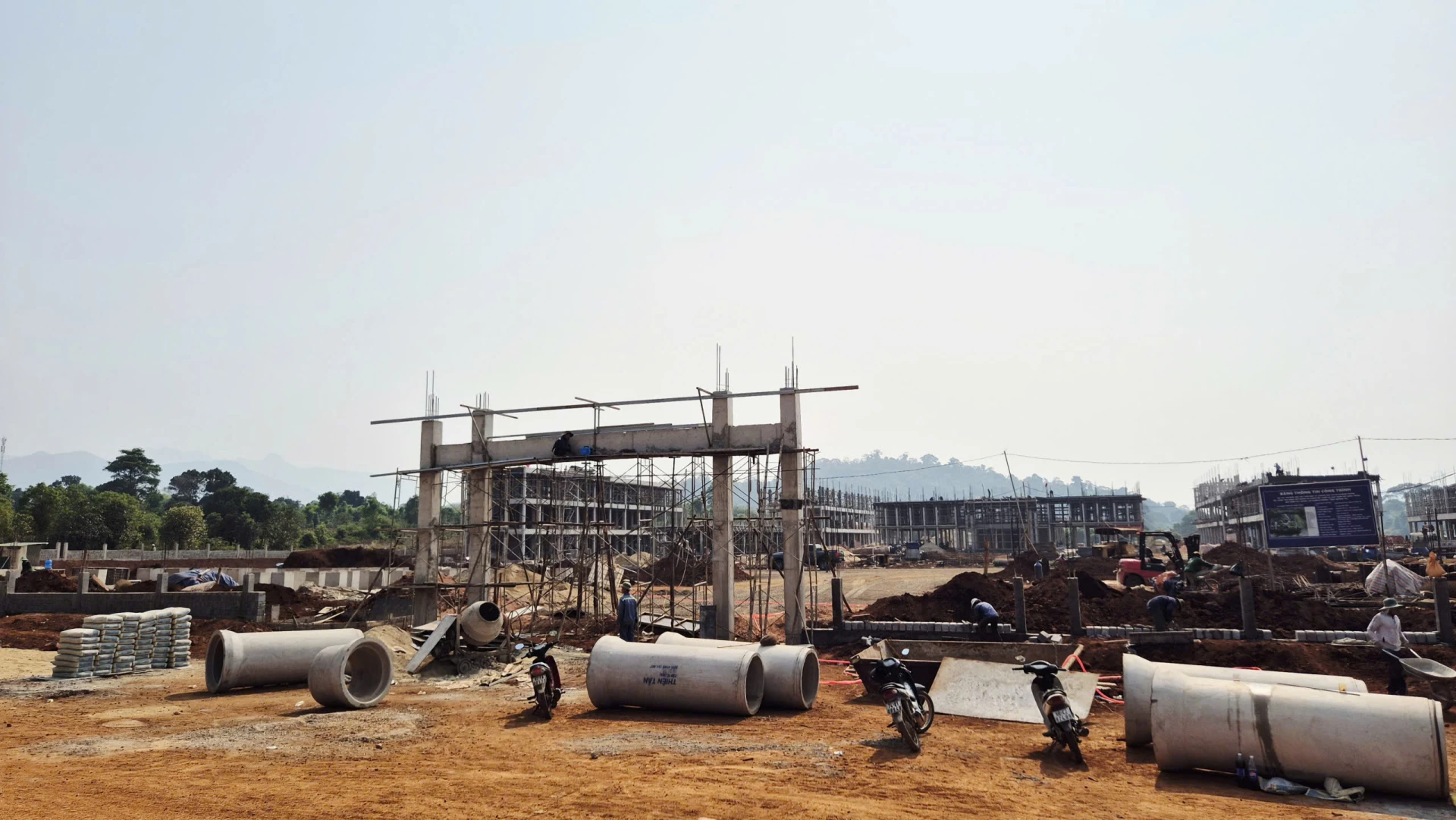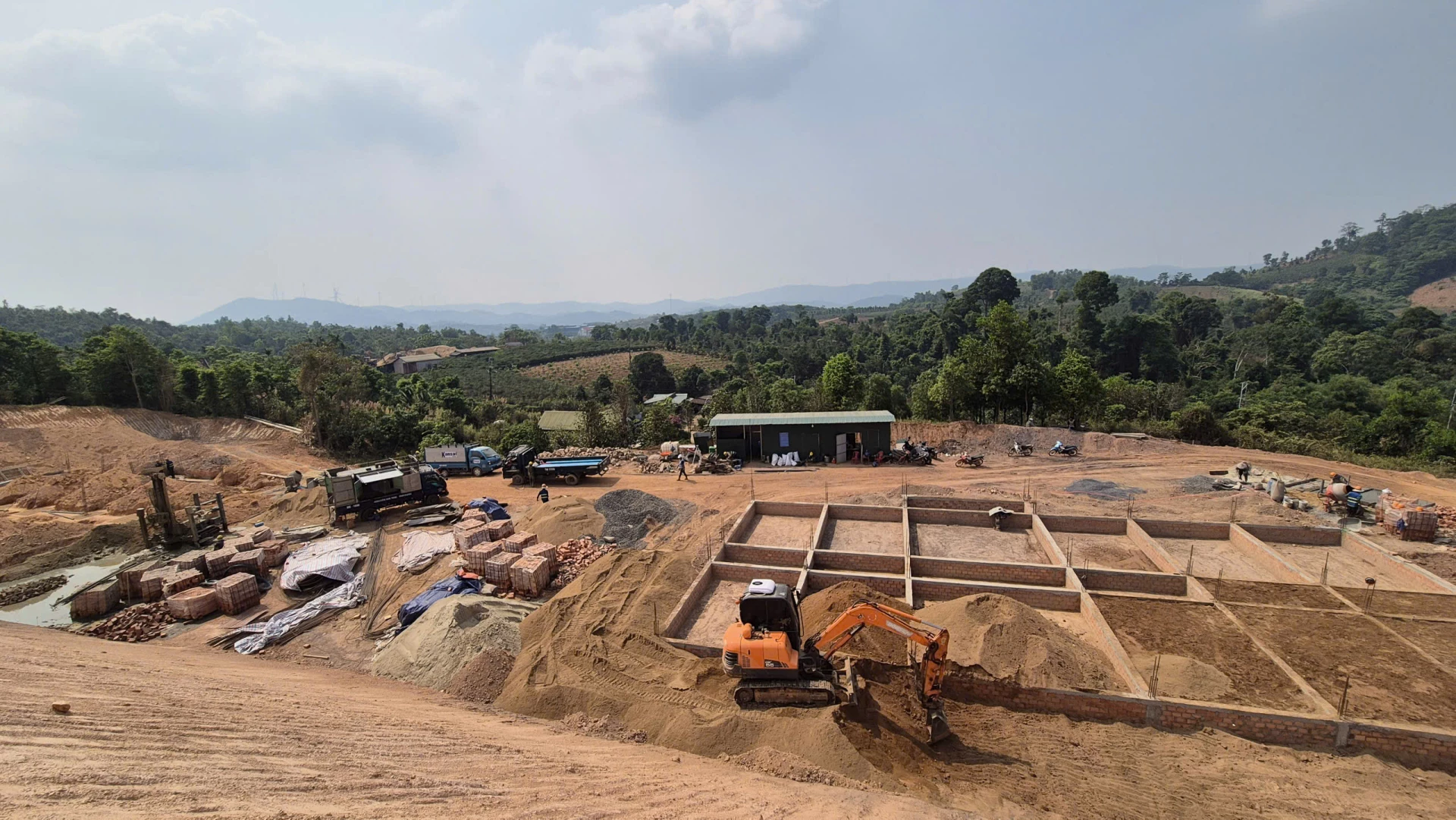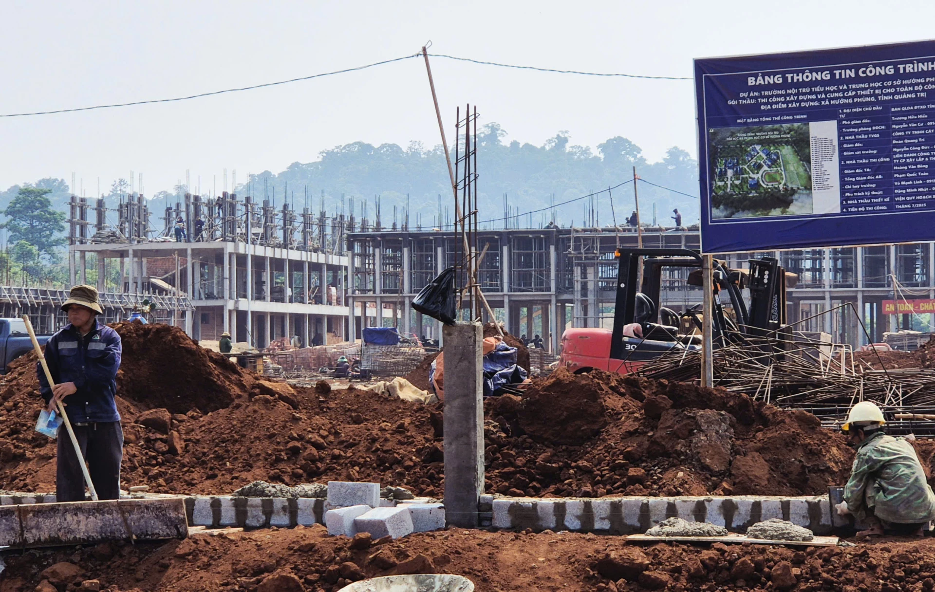 Khẩn trương huy động nhân lực, vật lực trên công trường Trường nội trú tiểu học và THCS Hướng Phùng, quyết tâm đưa dự án vùng biên về đích đúng kế hoạch - Ảnh: K.S