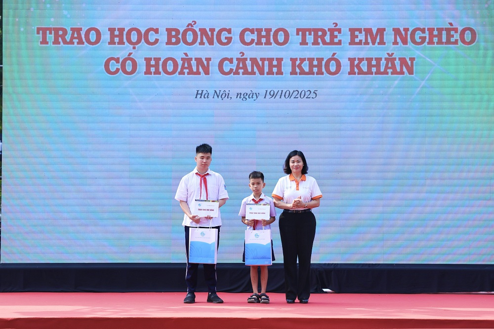 Trao học bổng tặng học sinh có hoàn cảnh khó khăn.
