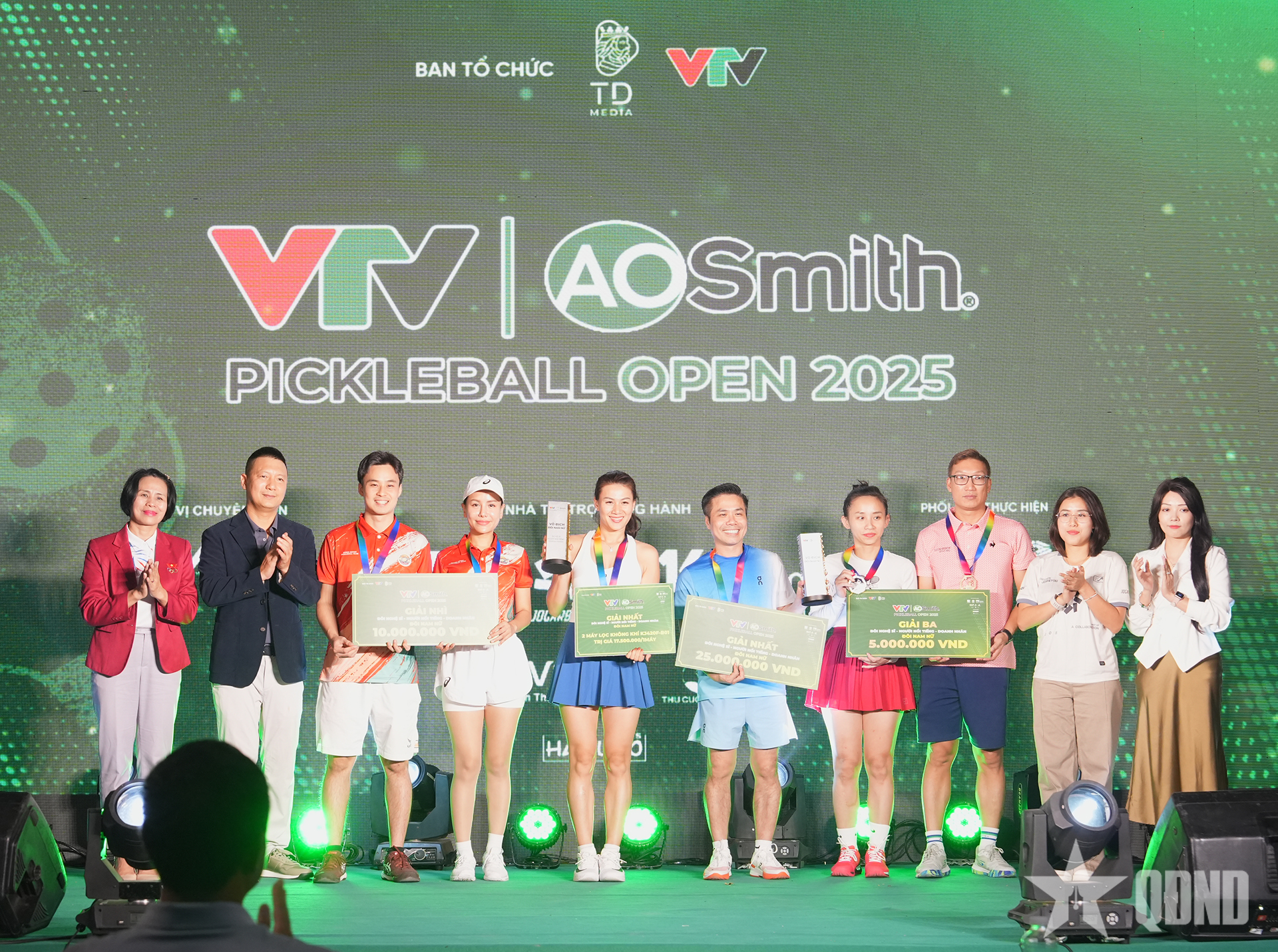 Tối 26-10, tại cụm sân Happyland (Long Biên, Hà Nội), Giải VTV A.O. SMITH Pickleball Open 2025 do Ban Thể thao - Đài Truyền hình Việt Nam và TD Media đồng tổ chức, dưới sự chỉ đạo chuyên môn của Cục Thể dục Thể thao Việt Nam cùng sự phối hợp của Vietcontent đã chính thức khép lại sau 3 ngày tranh tài sôi động.