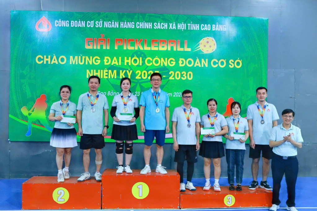 Ban Tổ chức trao giải nhất, nhì cho các VĐV đạt thành tích ở các nội dung. Trong đó, giải nhất đôi nam nữ thuộc về vận động viên Trần Duy, Chu Thị Ánh Nguyệt, Chi nhánh NHCSXH tỉnh; giải nhất đôi nam thuộc về vận động viên Dương Tiến Thành, Lã Ngọc Hải, Phòng Giao dịch NHCSXH Hà Quảng; giải nhất đôi nữ thuộc về vận động viên Mã Thị Hằng, Bàng Thị Loan, Phòng Giao dịch NHCSXH Bảo Lâm.