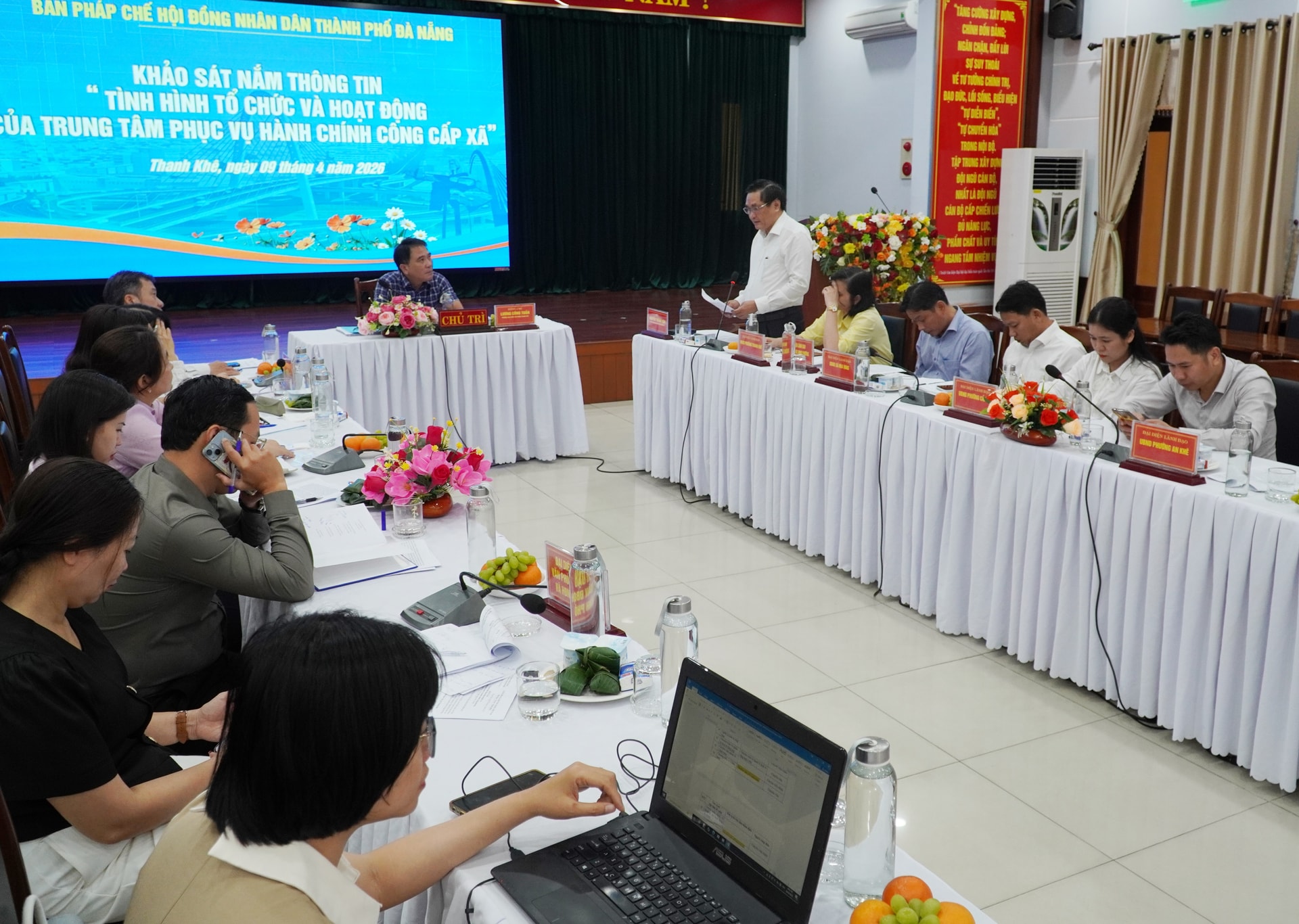 Ban Pháp chế HĐND thành phố khảo sát nắm tình hình về tổ chức và hoạt động của Trung tâm Phục vụ hành chính công các phường Thanh Khê, An Khê, Cẩm Lệ và xã Hòa Vang. Ảnh: N.ĐOAN