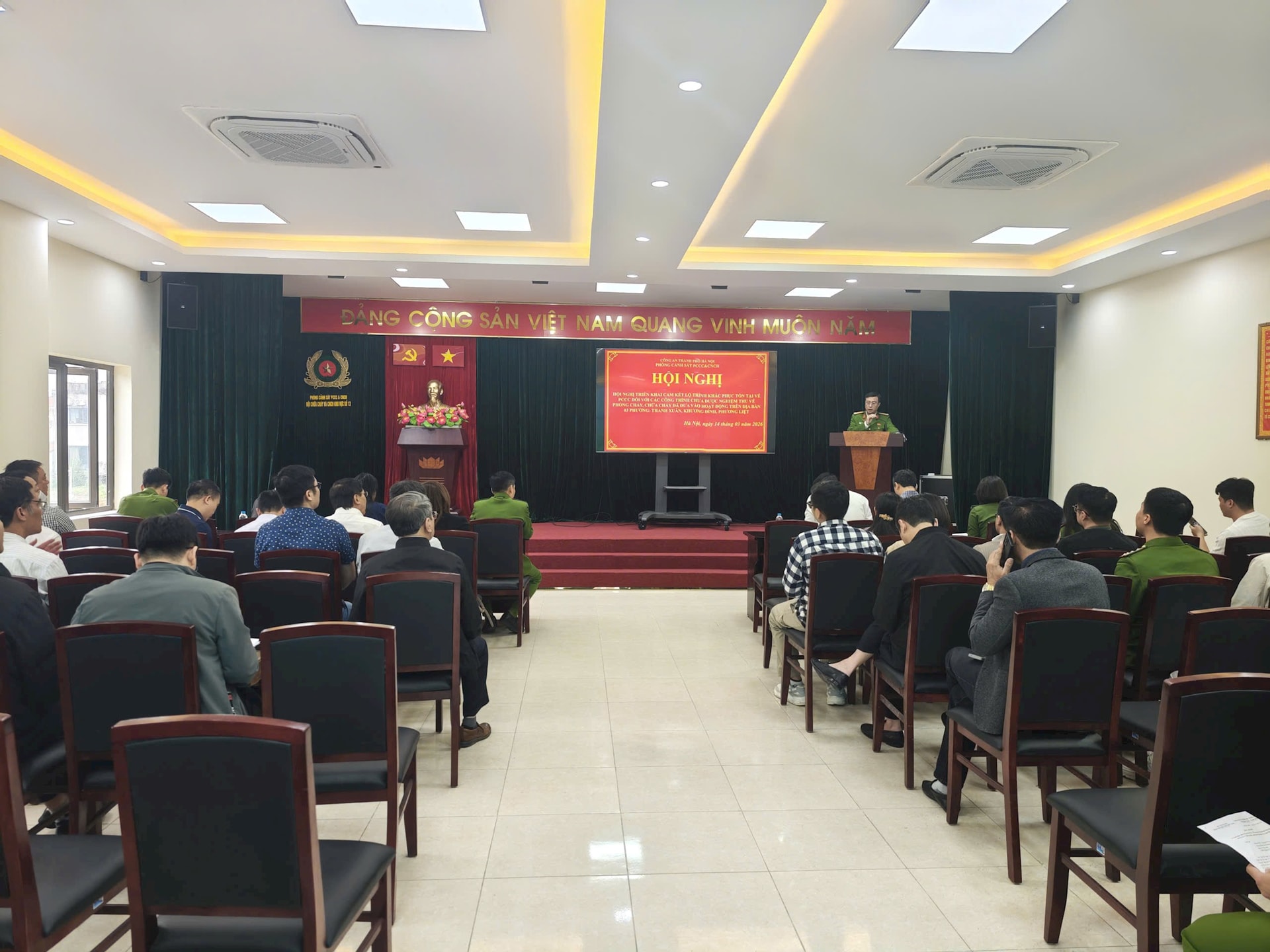Tại hội nghị, Trung tá Vũ Văn Quân, Phó đội trưởng Đội Chữa cháy và cứu nạn, cứu hộ khu vực số 13 phổ biến các quy định về an toàn phòng cháy, chữa cháy và cứu nạn, cứu hộ đối với chủ đầu tư, người đứng đầu 21 cơ sở, công trình chưa được nghiệm thu về phòng cháy, chữa cháy đã đưa vào hoạt động trên địa bàn 3 phường.