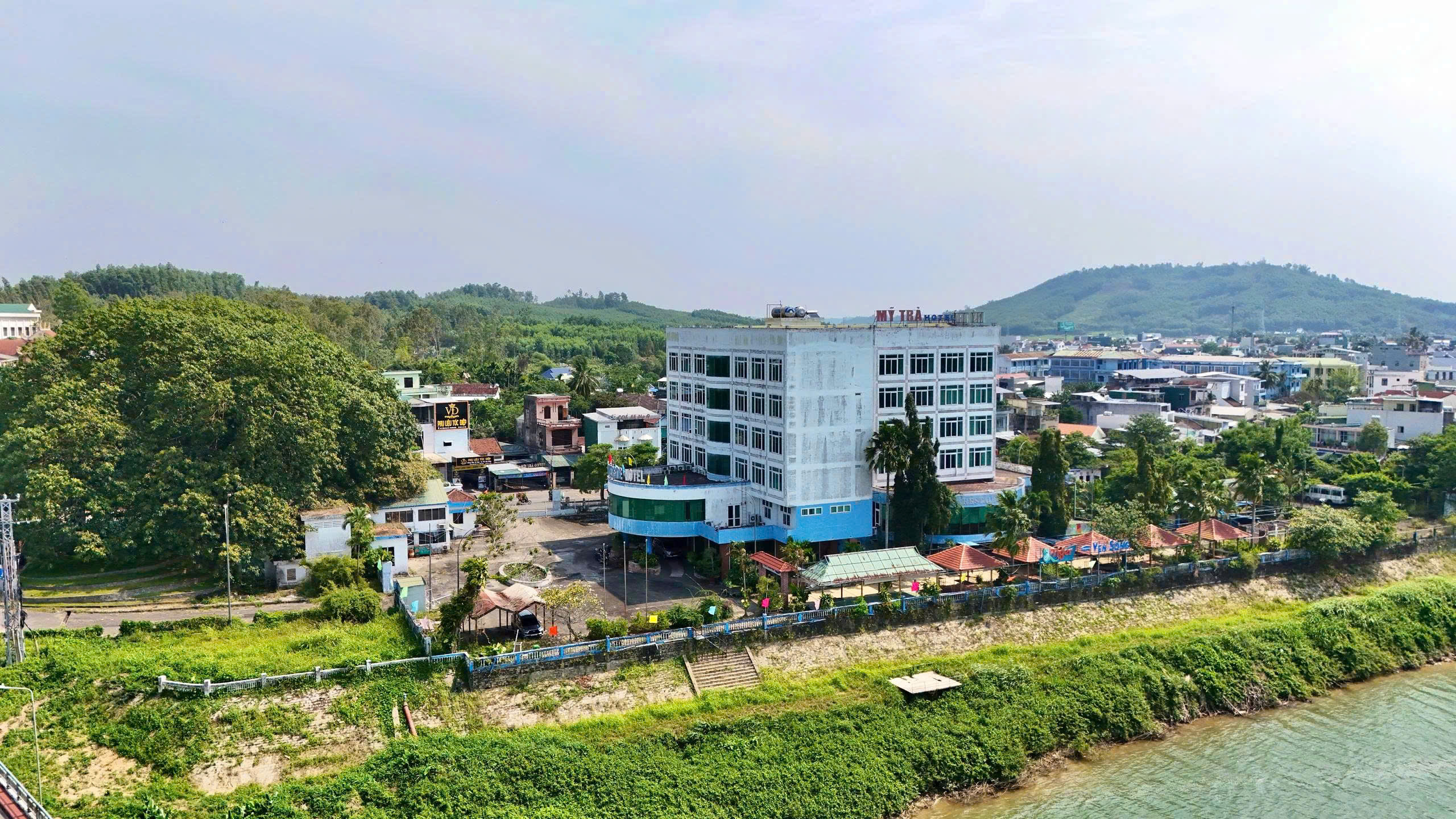 Khách sạn Mỹ Trà được xây dựng vào cuối thập niên 1990, trên khu đất hơn 6.000 m² ở bờ Bắc sông Trà Khúc, nay thuộc phường Trương Quang Trọng (tỉnh Quảng Ngãi).