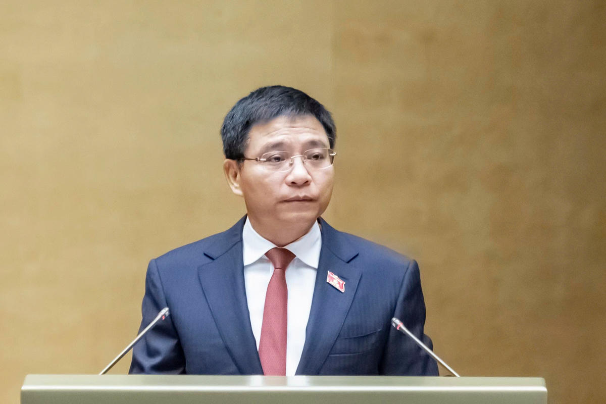 Bộ trưởng Bộ Tài chính Nguyễn Văn Thắng báo cáo trước Quốc hội (Ảnh: Quang Vinh)