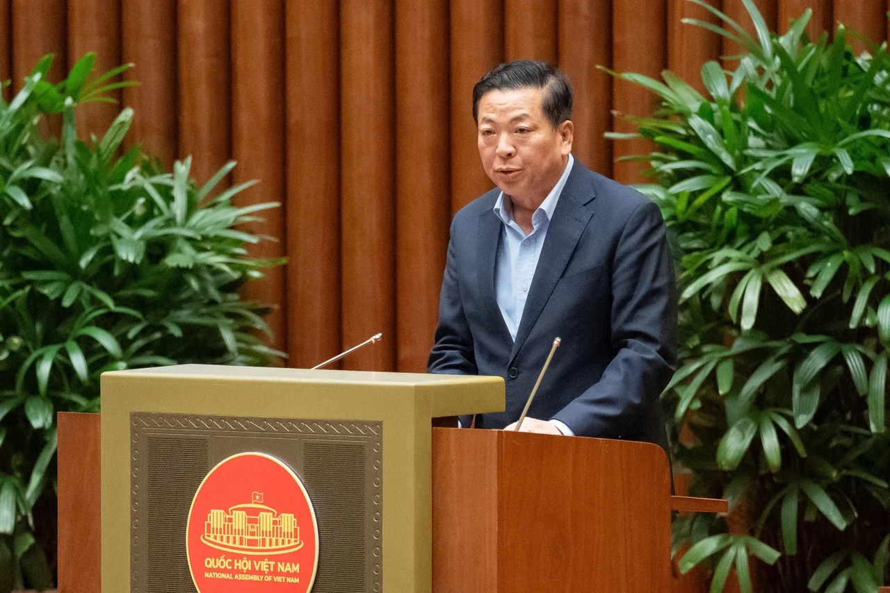 Bộ trưởng Bộ Xây dựng Trần Hồng Minh báo cáo giải trình trước Quốc hội về dự thảo Luật Xây dựng trước khi Quốc hội thông qua.