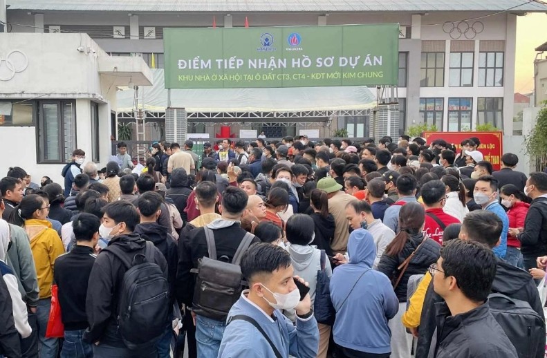 Người dân chen lấn nộp hồ sơ mua nhà ở xã hội.