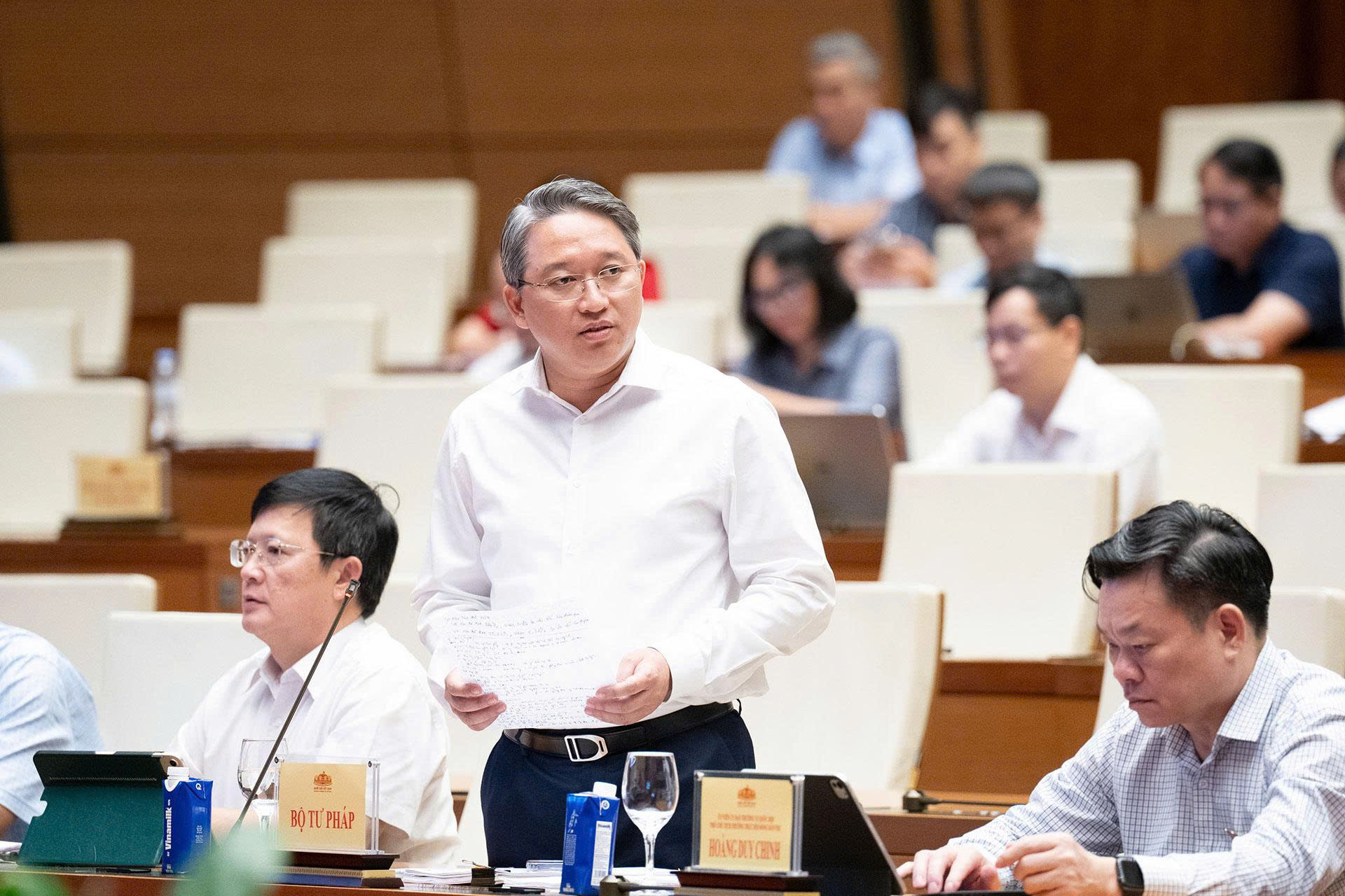 Bộ trưởng Tư pháp Nguyễn Hải Ninh phát biểu giải trình. Ảnh: Quốc hội