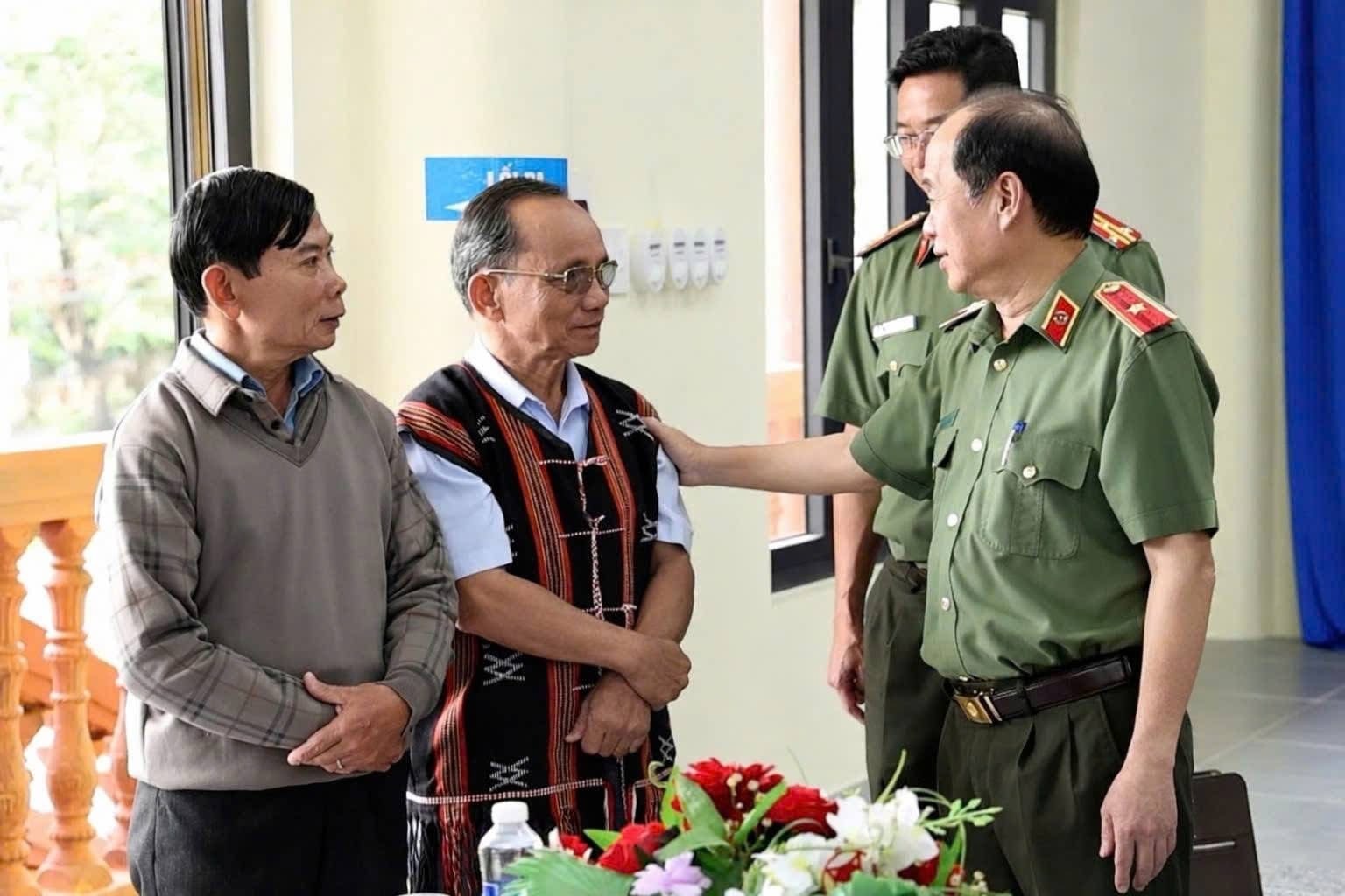 Thiếu tướng Nguyễn Hữu Hợp, Giám đốc Công an thành phố Đà Nẵng trò chuyện cùng đồng bào dân tộc thiểu số ở xã Hòa Vang. Ảnh: HẢI HÀ