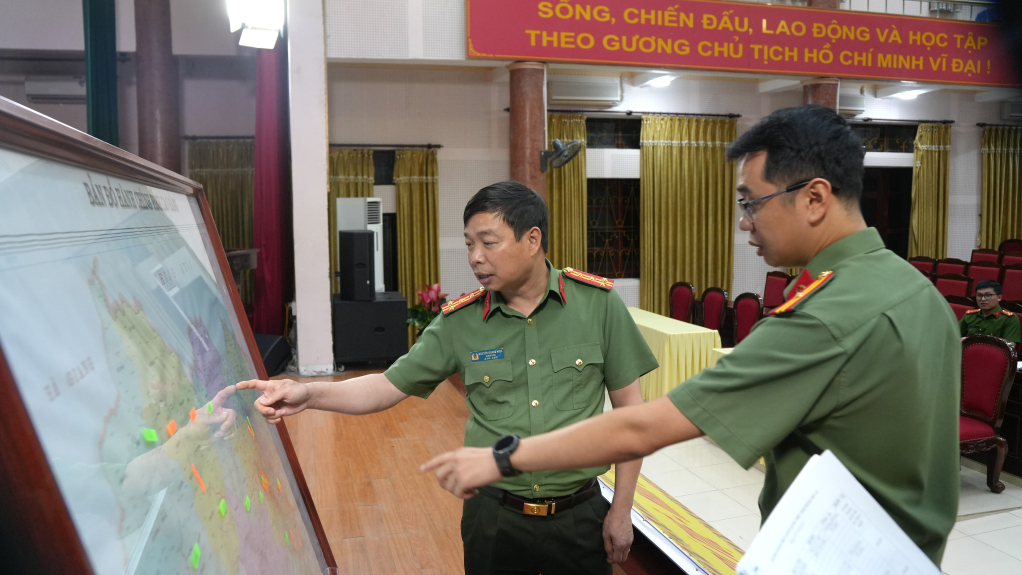 Tối cùng ngày, đồng chí Giám đốc kiểm tra Trung tâm Thông tin chỉ huy tác chiến của Công an tỉnh, nơi trực tiếp phục vụ công tác ứng phó với bão số 11. Tại đây, đồng chí nhấn mạnh, trong giai đoạn khó khăn hiện nay, nhân dân rất cần sự có mặt và hỗ trợ của lực lượng Công an. Đồng chí yêu cầu cán bộ, chiến sĩ nêu cao tinh thần trách nhiệm, chấp hành nghiêm các kế hoạch, công điện chỉ đạo của Công an tỉnh; chủ động tiếp nhận, xử lý thông tin, phối hợp chặt chẽ trong công tác điều phối lực lượng, phương tiện, bảo đảm cho các tổ công tác cùng cấp ủy, chính quyền và nhân dân ứng phó hiệu quả, vượt qua bão lũ an toàn, bảo vệ tuyệt đối tính mạng, sức khỏe của nhân dân và lực lượng tham gia cứu hộ.