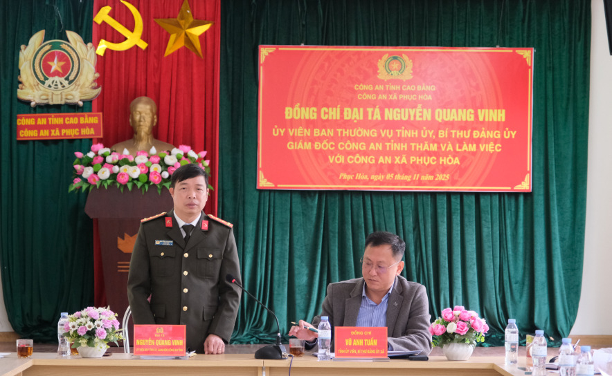 Phát biểu tại buổi làm việc, Giám đốc Công an tỉnh Nguyễn Quang Vinh ghi nhận, biểu dương những kết quả công tác trong 10 tháng đầu năm của đơn vị. Đề nghị Công an xã Phục Hòa tiếp tục làm tốt công tác xây dựng Đảng, xây dựng lực lượng, đơn vị thực sự đoàn kết, thống nhất; siết chặt kỷ luật, kỷ cương, quan tâm công tác quản lý cán bộ. Những tháng cuối năm, Công an xã tiếp tục tham mưu cho Đảng ủy, Ban Giám đốc Công an tỉnh; cấp ủy, chính quyền địa phương triển khai các mặt công tác bảo đảm an ninh trật tự trên địa bàn. Nâng cao công tác quản lý cư trú, xuất, nhập cảnh trái phép; vận động nhân dân tự giác giao nộp vũ khí, vật liệu nổ, công cụ hỗ trợ. Đẩy mạnh công tác phòng cháy chữa cháy; đấu tranh với các loại tội phạm về hình sự, kinh tế, ma túy…