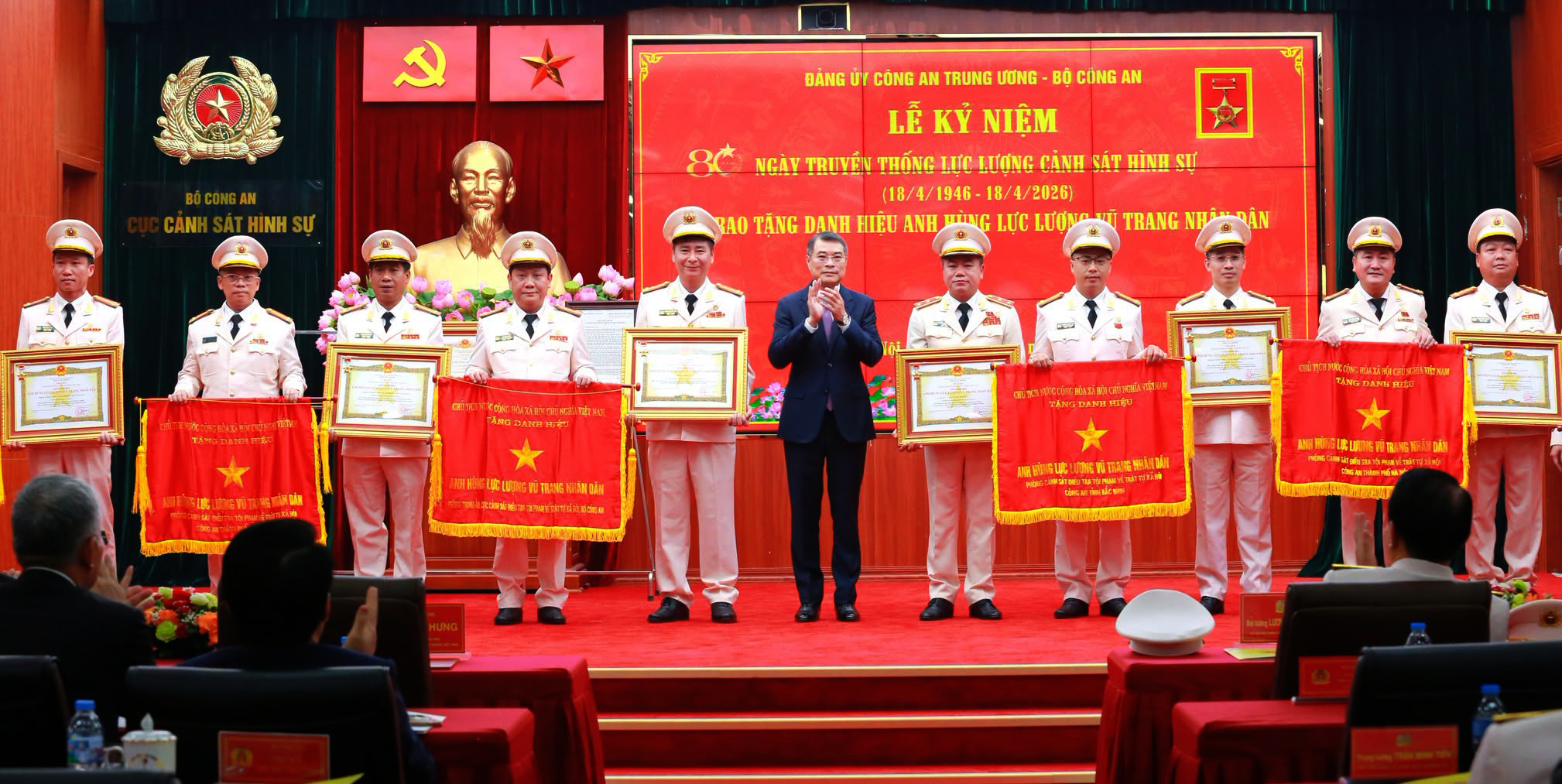 Sáng 18-4, tại Hà Nội, Bộ Công an tổ chức trọng thể Lễ kỷ niệm 80 năm Ngày truyền thống lực lượng Cảnh sát hình sự (18-4-1946 – 18-4-2026) và trao tặng danh hiệu Anh hùng Lực lượng vũ trang nhân dân cho các tập thể, cá nhân.