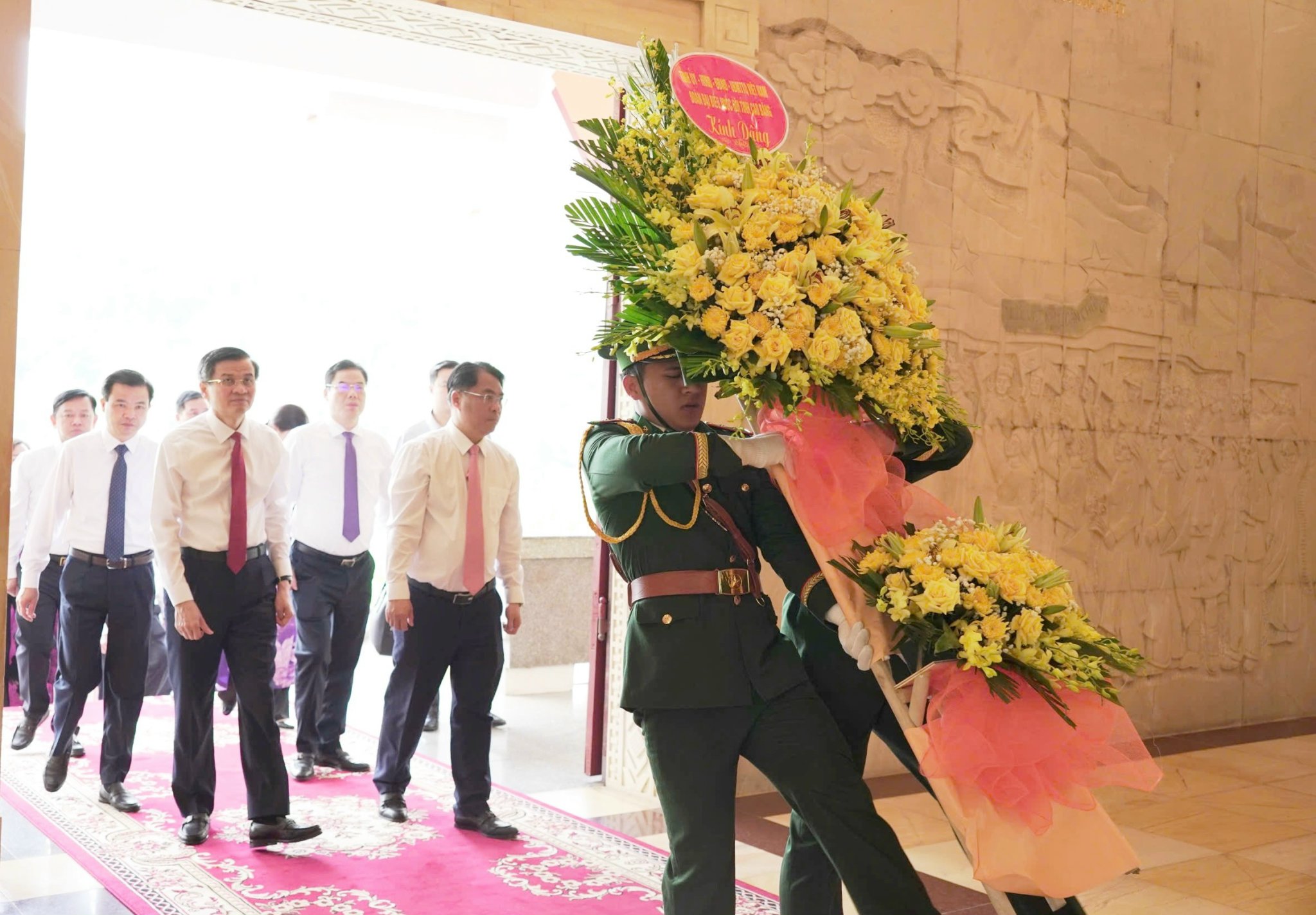 Trong không khí trang nghiêm, đoàn đại biểu thành kính dâng hương, dâng hoa trước anh linh Chủ tịch Hồ Chí Minh, vị lãnh tụ thiên tài của Đảng và nhân dân ta, người thầy vĩ đại của cách mạng Việt Nam, Anh hùng giải phóng dân tộc, Danh nhân văn hóa thế giới. Bày tỏ tấm lòng biết ơn vô hạn công lao trời biển của Chủ tịch Hồ Chí Minh - Người đã cống hiến, hy sinh trọn đời cho sự nghiệp giải phóng dân tộc, giải phóng giai cấp, vì hòa bình và hạnh phúc của dân tộc Việt Nam và nhân dân trên thế giới.
