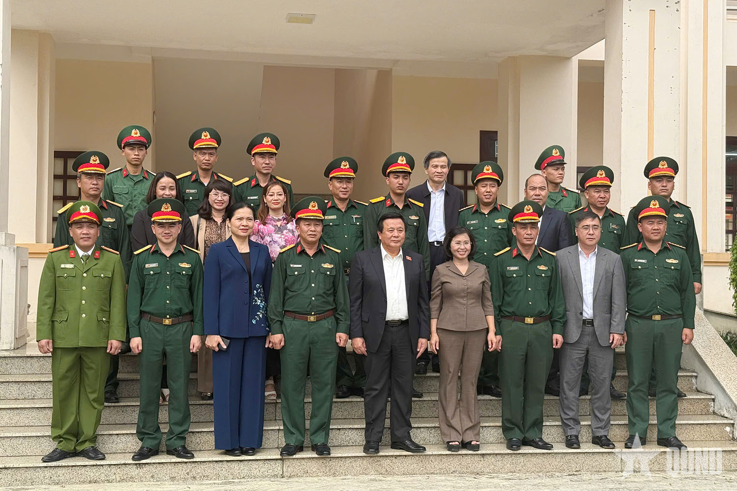 Các đại biểu chụp ảnh lưu niệm với cán bộ, chiến sĩ đơn vị.