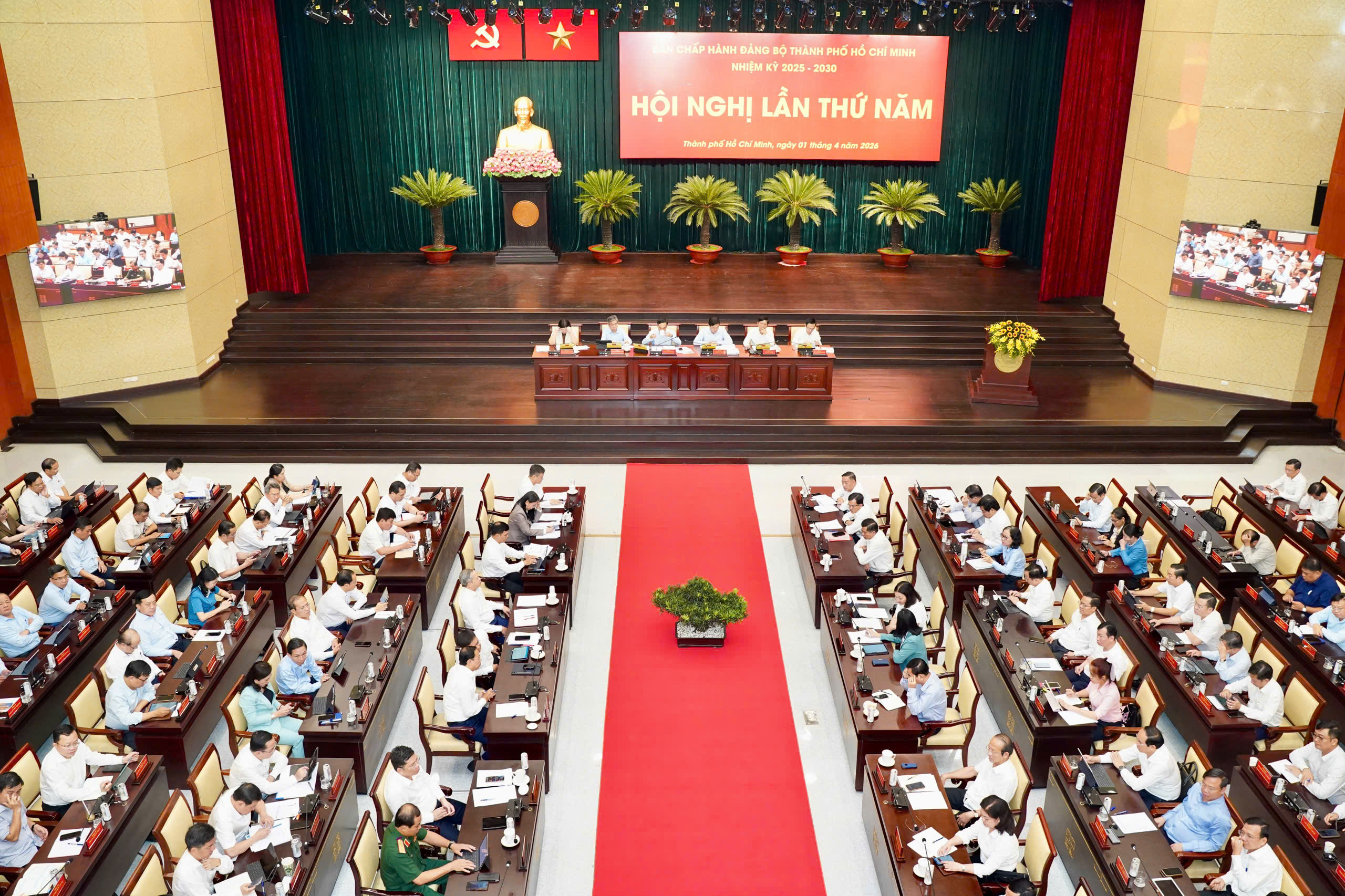 Hội nghị Ban Chấp hành Đảng bộ TPHCM lần thứ 5, nhiệm kỳ 2025-2030, diễn ra chiều 1-4. Ảnh: THUẬN VĂN