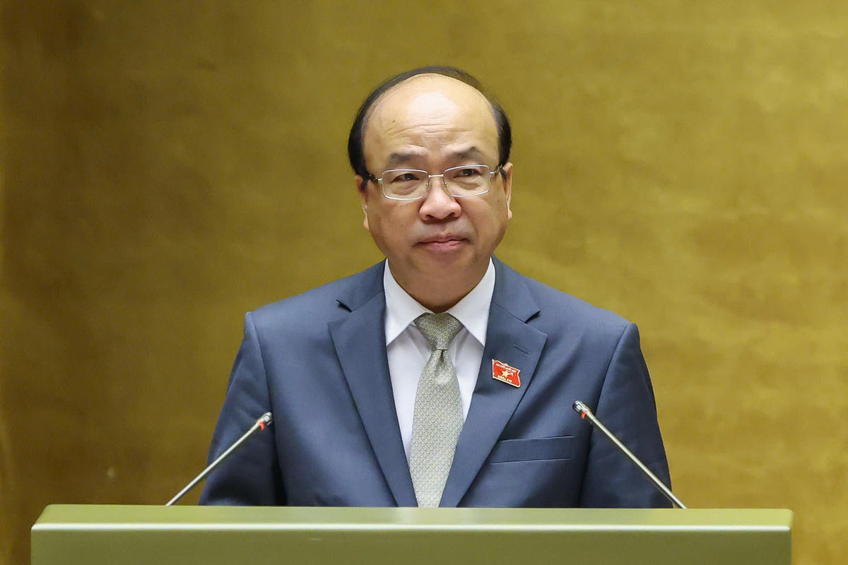 Chủ nhiệm Ủy ban Pháp luật và Tư pháp Phan Chí Hiếu trình bày báo cáo Thẩm tra sửa đổi, bổ sung một số điều của Luật Công chứng. Ảnh: Quang Vinh