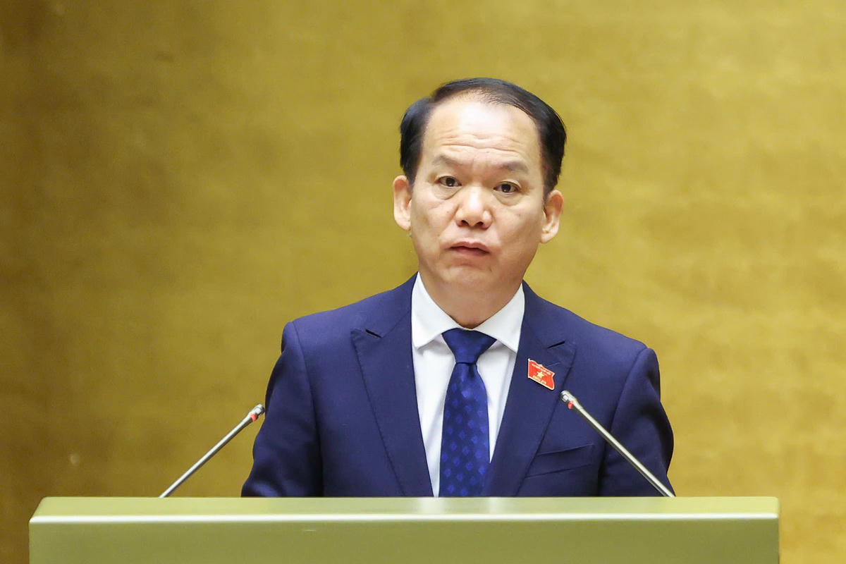 Bộ trưởng Bộ Tư pháp Hoàng Thanh Tùng trình bày Tờ trình sửa đổi, bổ sung một số điều của Luật Công chứng. Ảnh: Quang Vinh