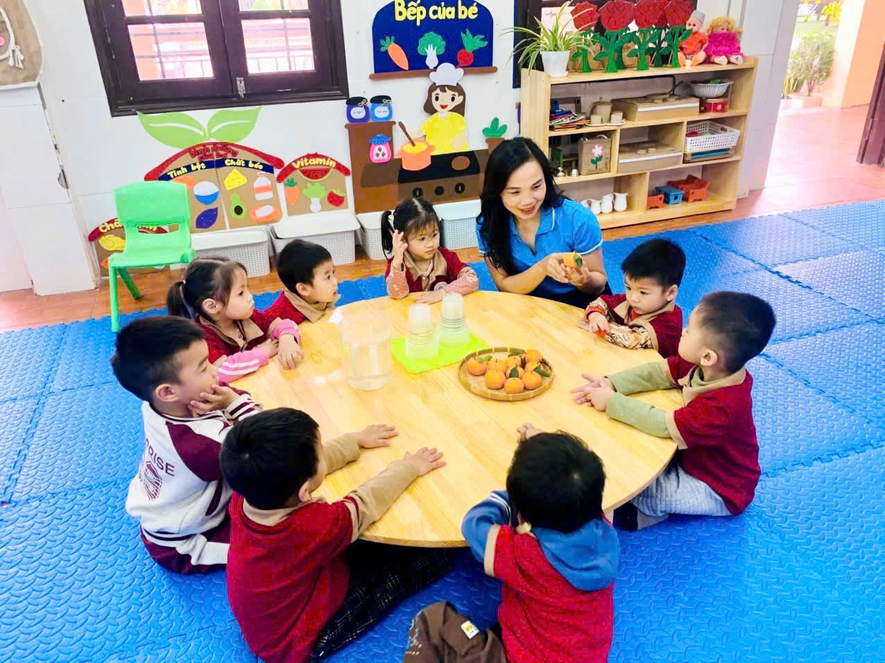 Cô và trò Trường Mầm non Phù Lưu Tế (xã Mỹ Đức, Hà Nội) trong một giờ học.