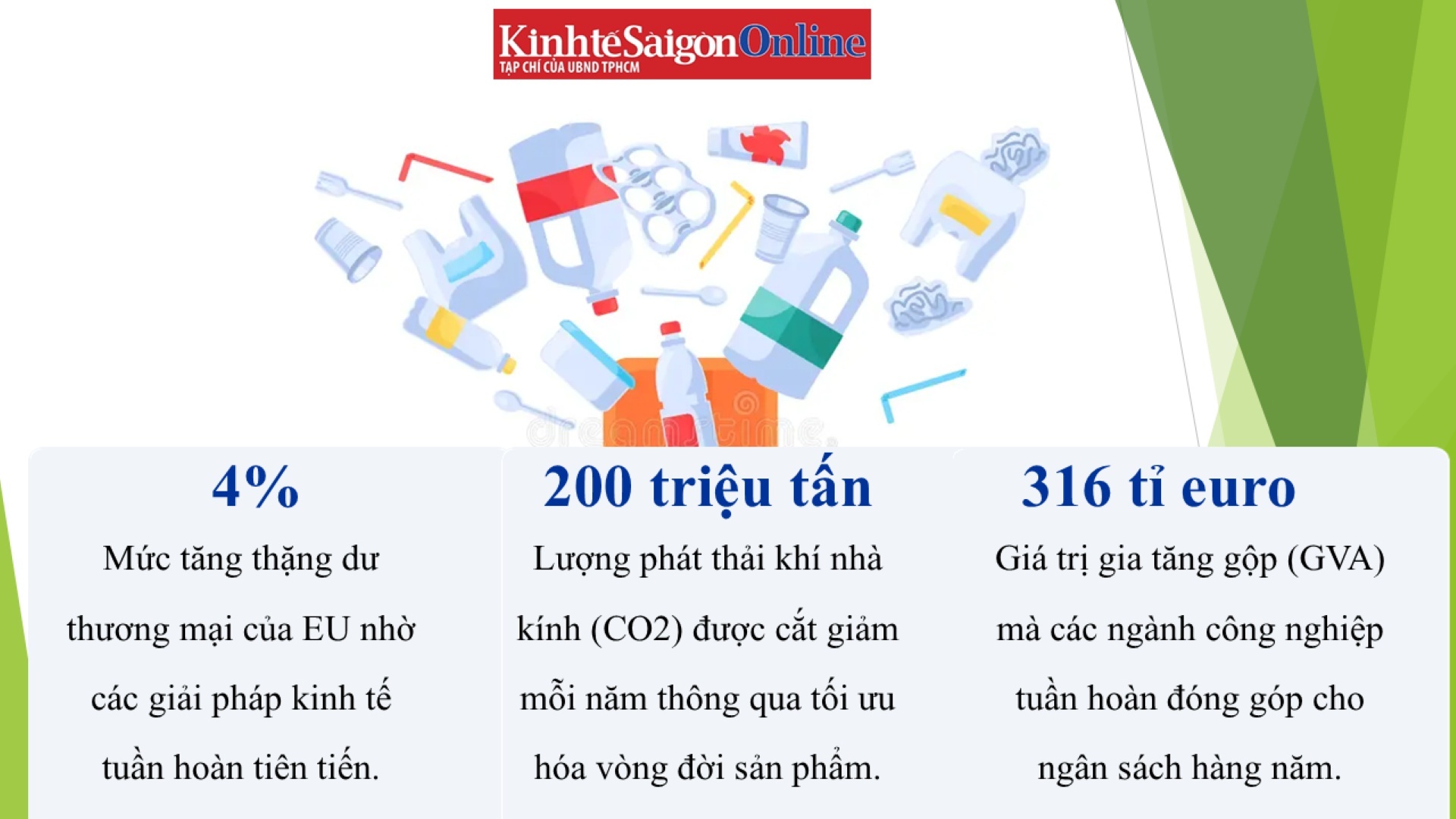 Dự kiến đến năm 2050, các giải pháp tuần hoàn có thể giúp thặng dư thương mại của EU tăng thêm 4% và cắt giảm lượng khí thải nhà kính tương đương 200 triệu tấn CO2.