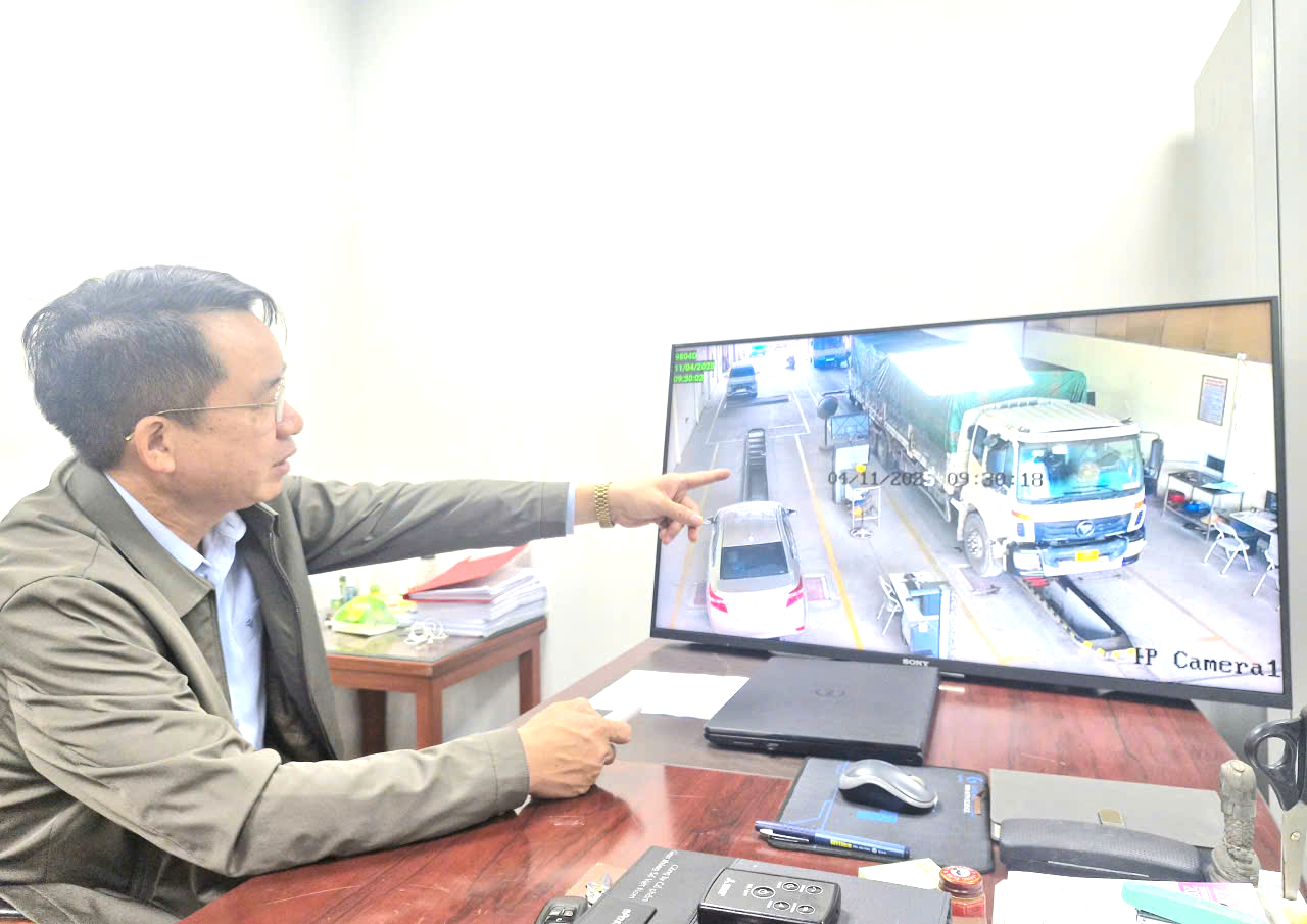 Lãnh đạo Phòng Vận tải và ATGT, Sở Xây dựng tỉnh Bắc Ninh khai thác dữ liệu camera giám sát của Cục Đăng kiểm Việt Nam để chấn chỉnh hoạt động tại các trung tâm đăng kiểm.