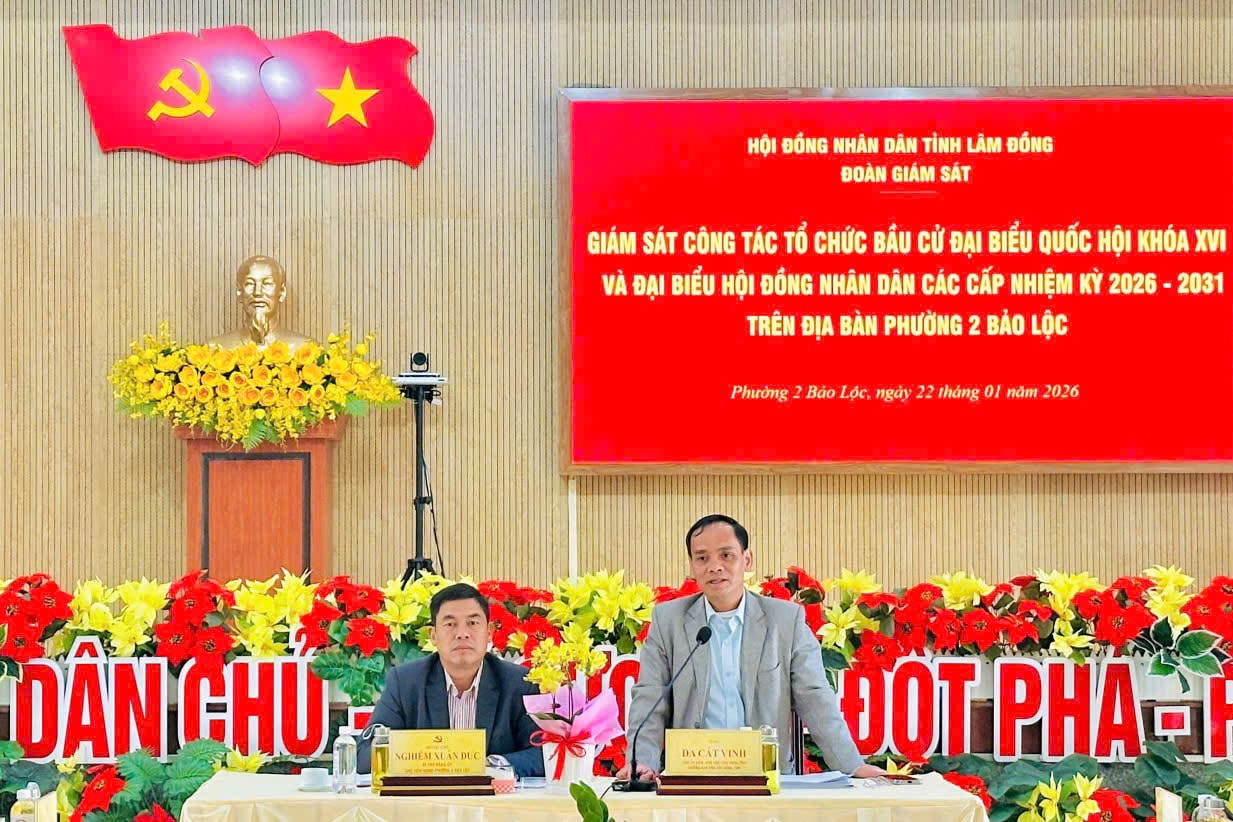 Đoàn công tác cũng thực hiện giám sát tại các xã Đinh Trang Thượng, Ka Đô, phường 2 Bảo Lộc và xã Đức Trọng. Phát biểu kết luận buổi làm việc tại xã Đức Trọng, ông Đa Cát Vinh - Phó Chủ tịch HĐND tỉnh đã ghi nhận và biểu dương sự chủ động, nghiêm túc của địa phương trong triển khai các nội dung công tác bầu cử. Để bảo đảm cuộc bầu cử diễn ra thành công tốt đẹp, Đoàn giám sát đề nghị trong thời gian tới, địa phương cần tiếp tục đẩy mạnh hơn nữa công tác tuyên truyền sâu rộng trong Nhân dân; rà soát kỹ lưỡng các điều kiện về cơ sở vật chất phục vụ bầu cử; bảo đảm cuộc bầu cử diễn ra dân chủ, đúng pháp luật và tuyệt đối an toàn...