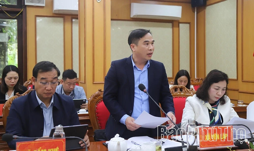 Đại diện lãnh đạo xã Yên Lập báo cáo tình hình triển khai công tác bầu cử tại buổi giám sát.