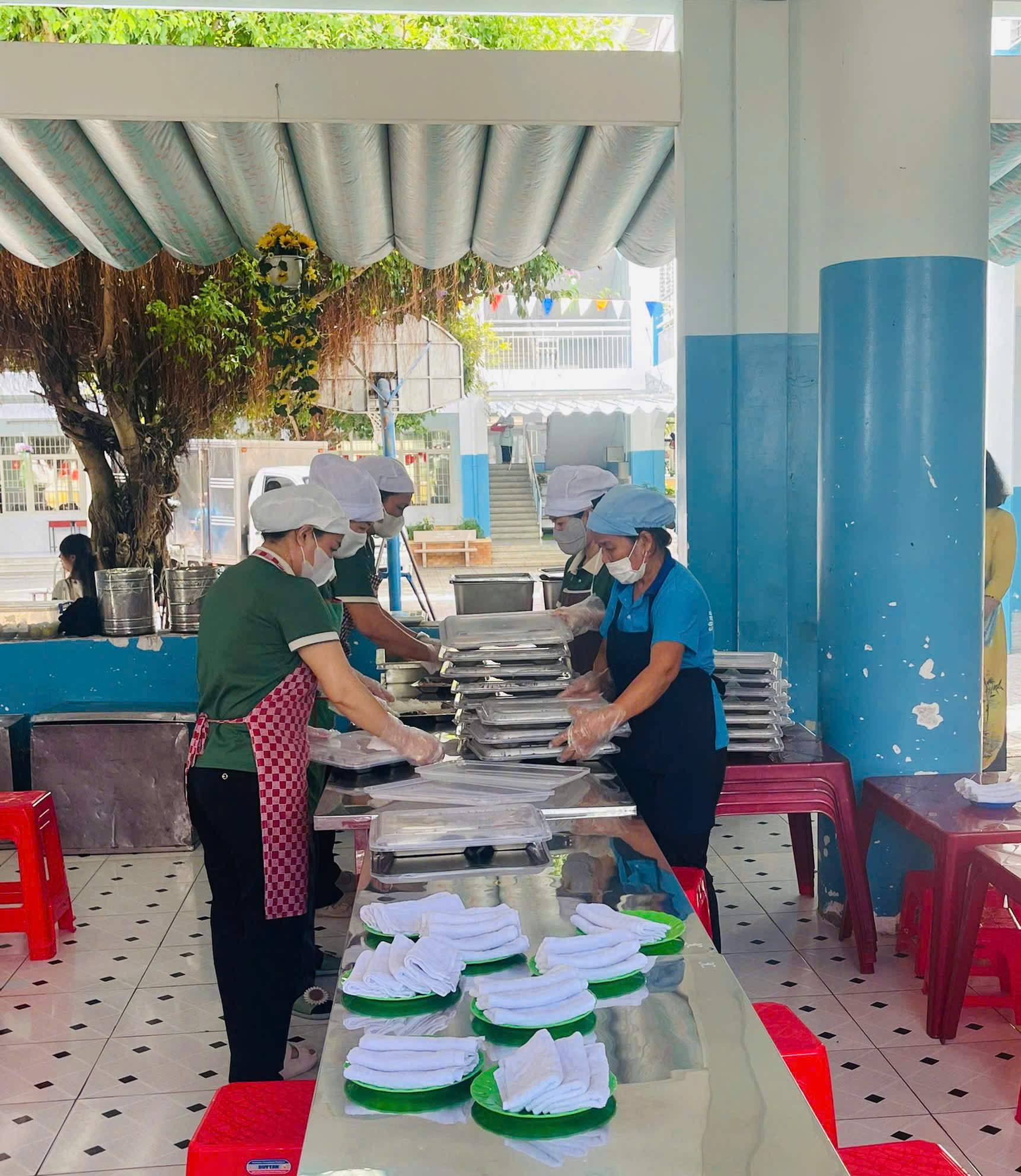 Ông Hoàng Đình Kê, Trưởng ban Văn hóa - Xã hội phường Tam Thắng, cho biết để hoạt động bán trú không bị gián đoạn, Phòng Văn hóa - Xã hội phường đã hỗ trợ nhà trường tìm đơn vị cung cấp suất ăn tạm thời. Hai đơn vị được lựa chọn là Công ty TNHH Đầu tư - Thương mại - Dịch vụ Thành Đạt và Công ty TNHH Suất ăn Công nghiệp Tiến Sang, đảm nhận cung cấp hơn 600 suất ăn mỗi ngày trong khoảng hai tuần.