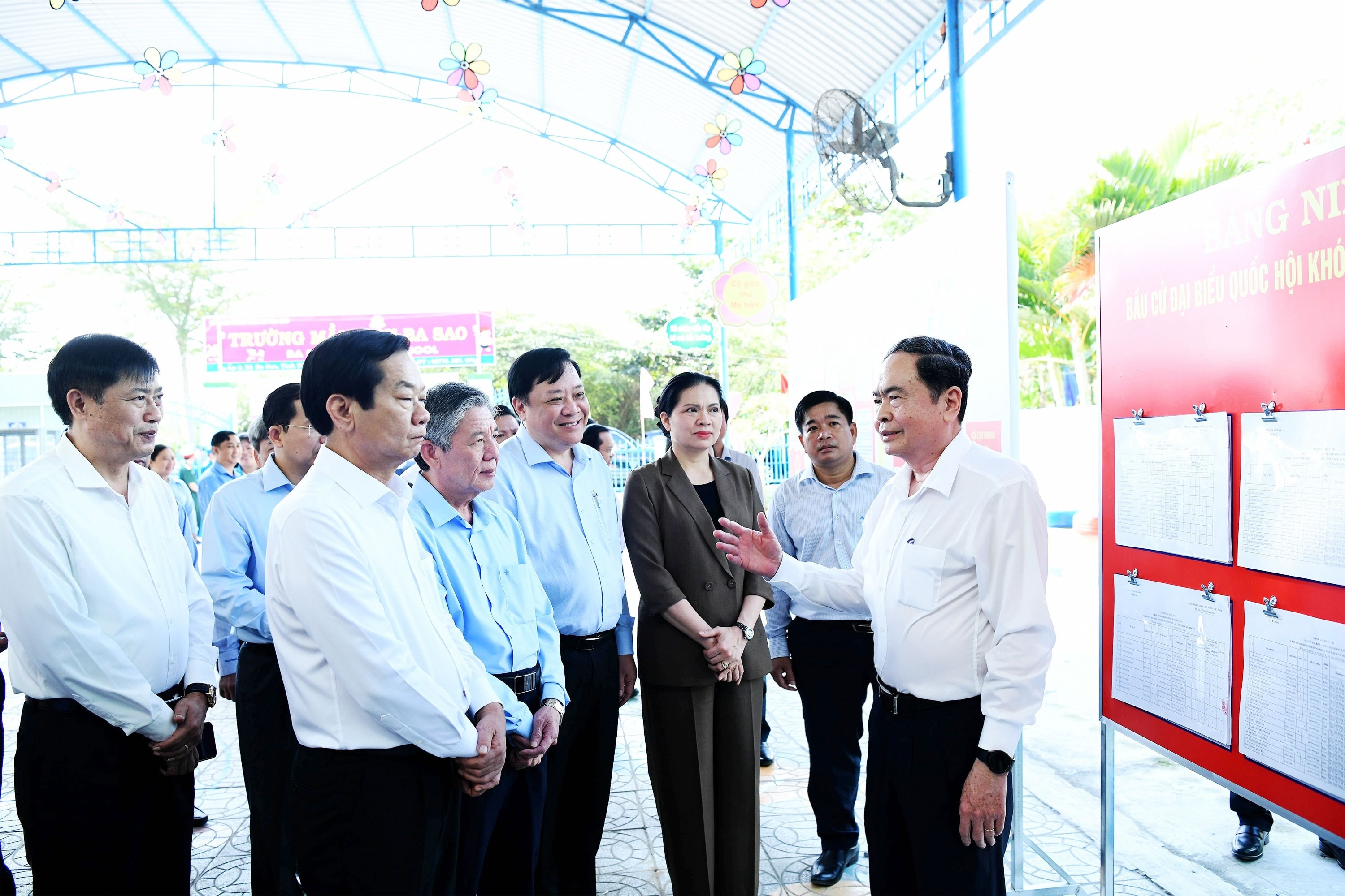 Chủ tịch Quốc hội, Chủ tịch Hội đồng Bầu cử quốc gia Trần Thanh Mẫn giám sát, kiểm tra công tác bầu cử tại tỉnh Đồng Tháp. Ảnh: Lâm Hiển