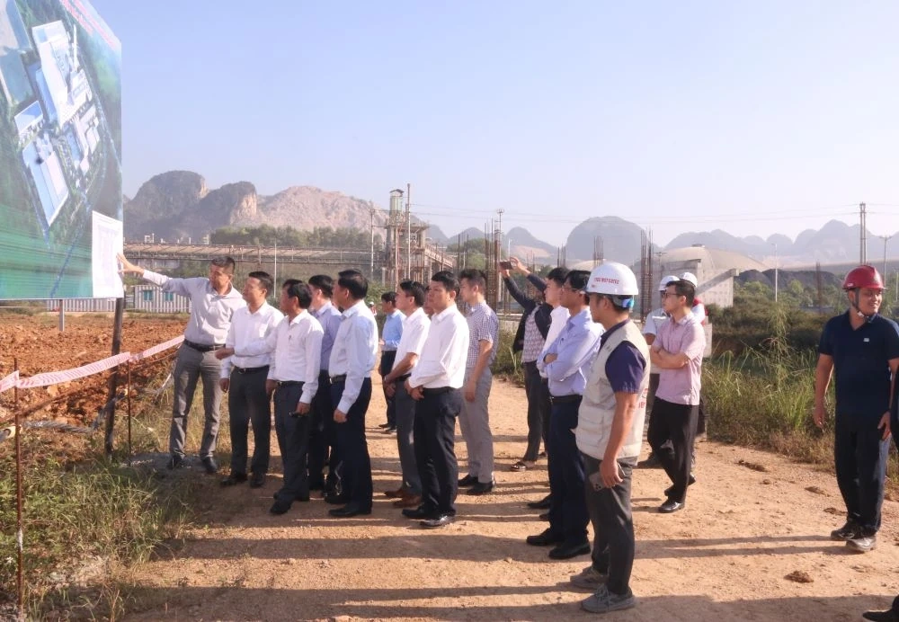 Đoàn giám sát của HĐND tỉnh khảo sát thực tế tại Nhà máy xi măng Long Sơn.