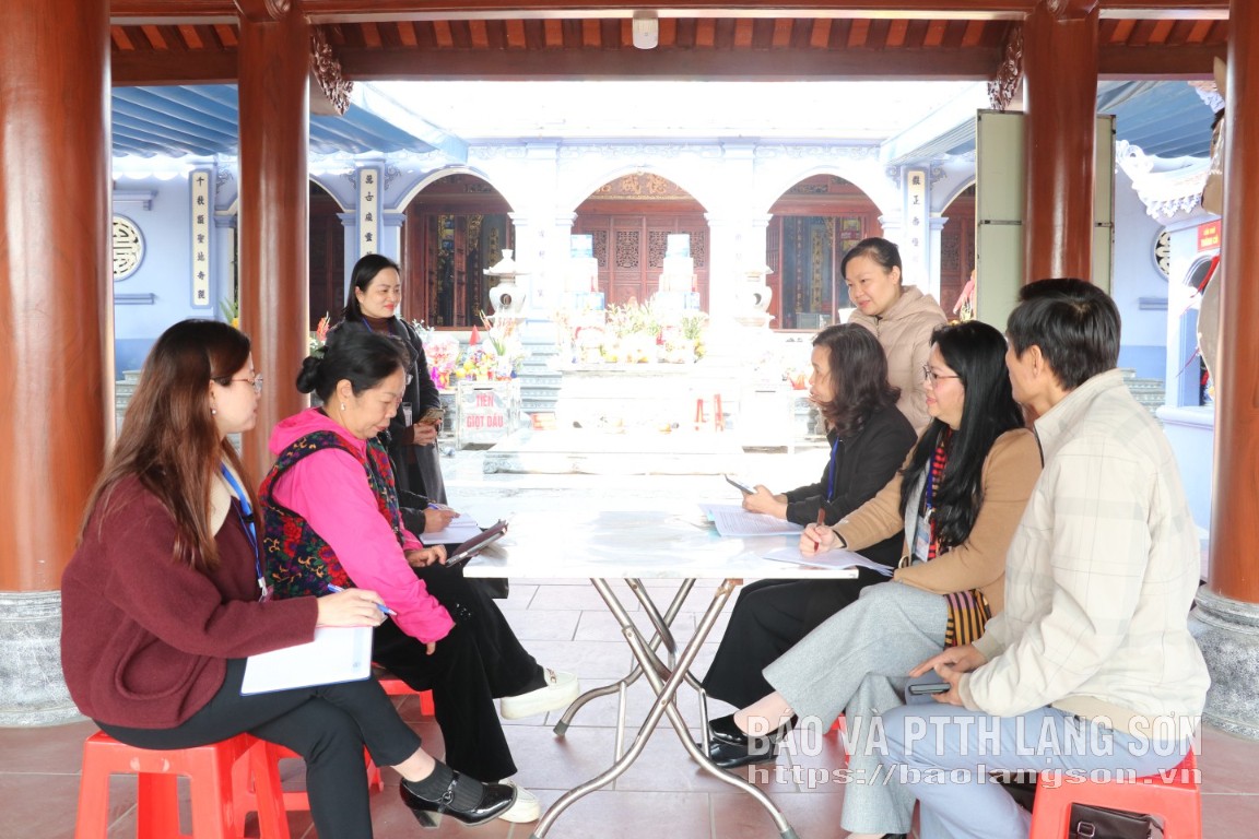 Thành viên đoàn trực tiếp giám sát công tác thu thập thông tin của điều tra viên tại Đền Kỳ Cùng