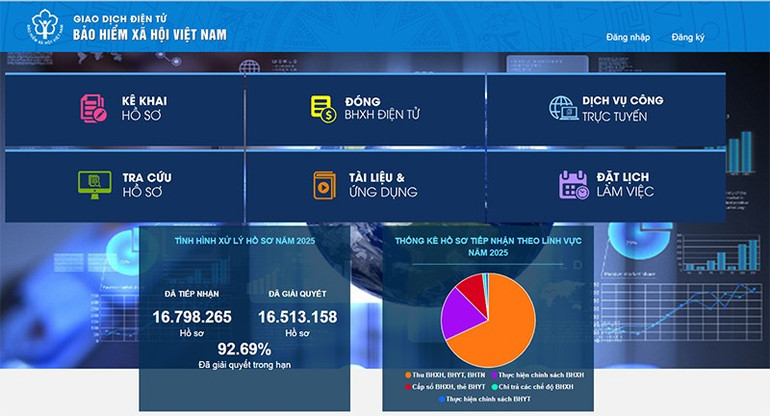Bên cạnh đó, Bảo hiểm xã hội Việt Nam cũng đẩy mạnh triển khai các dịch vụ công trực tuyến trên Cổng Dịch vụ công quốc gia, Cổng Dịch vụ công Bảo hiểm xã hội Việt Nam, cũng như trên các ứng dụng VNeID, VssID hoặc ứng dụng của một số ngân hàng. Hiện nay, hầu hết các thủ tục hành chính liên quan đến bảo hiểm xã hội, bảo hiểm y tế đã được cung cấp trực tuyến mức độ 4. Người dân, doanh nghiệp có thể thực hiện mọi quy trình từ đăng ký, đóng tiền, nhận kết quả mà không cần phải đến trực tiếp cơ quan bảo hiểm xã hội, tiết kiệm thời gian và chi phí đi lại.