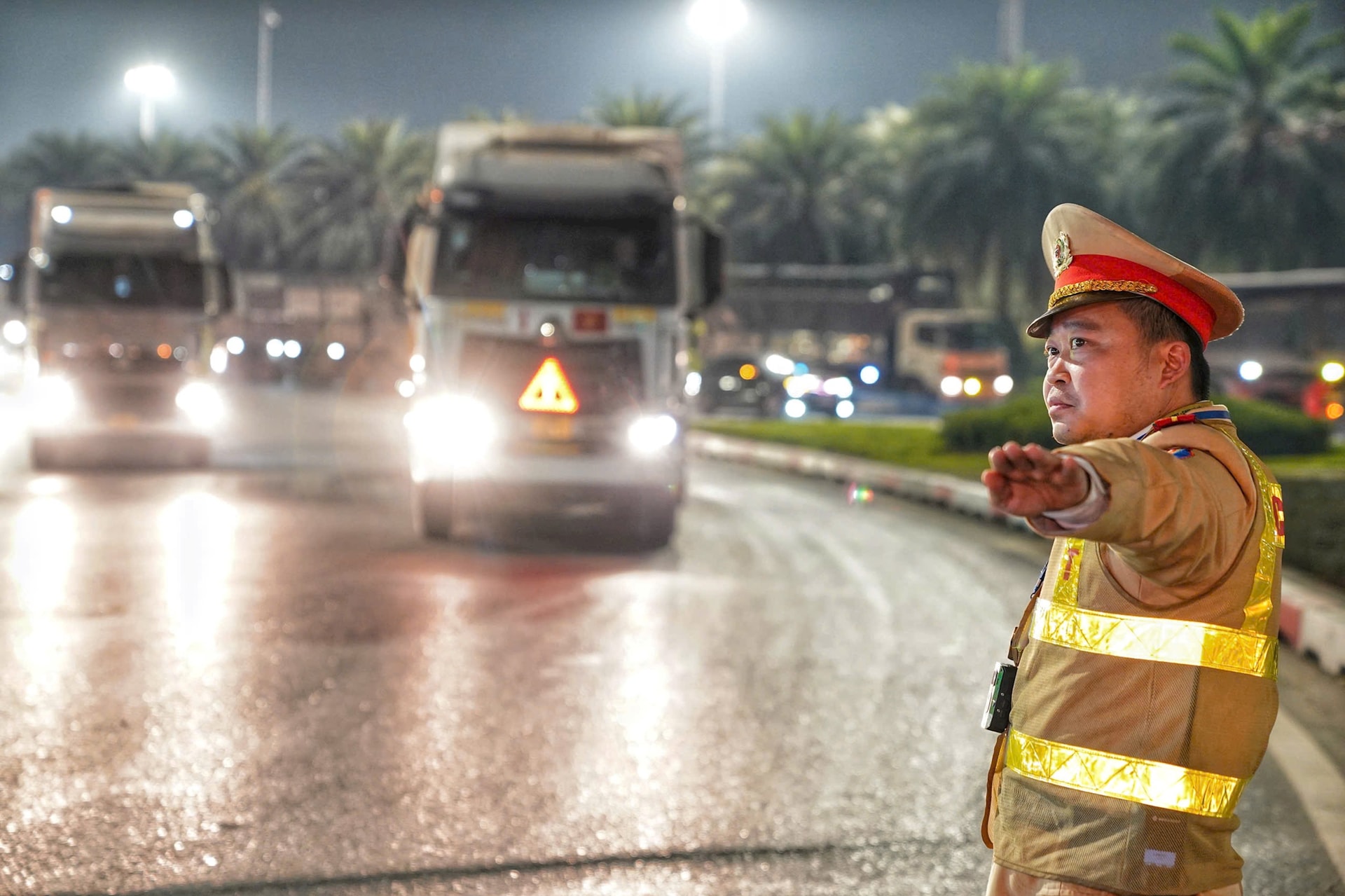 Theo Thiếu tá Ngô Văn Tâm, cán bộ Đội Cảnh sát giao thông đường bộ số 6 (Phòng Cảnh sát giao thông, Công an thành phố Hà Nội), khi đến giờ các phương tiện hơn 10 tấn được hoạt động trên đường Vành đai 3 trên cao, lực lượng Cảnh sát giao thông sẽ tiến hành phân luồng và hướng dẫn các phương tiện di chuyển an toàn; đồng thời khuyến cáo các tài xế chủ động nắm rõ thời gian hoạt động để bảo đảm lộ trình vận tải.