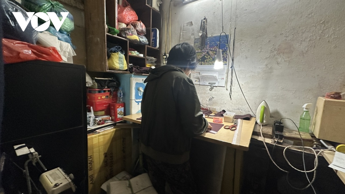 Bà Thoa làm việc trong căn hộ 7m² của gia đình tại 49 Hàng Bạc