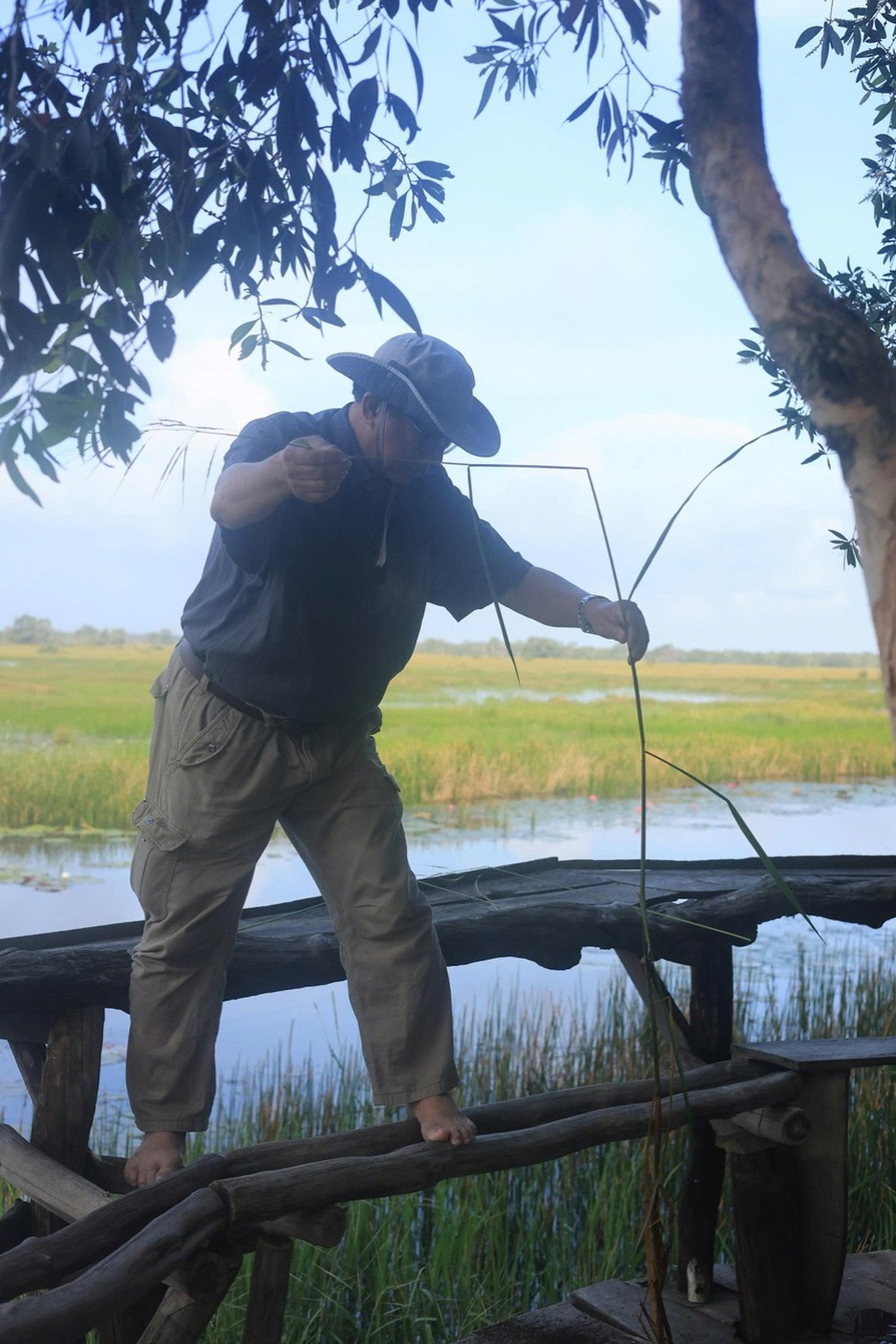 PGS.TS Lê Anh Tuấn lấy mẫu thực vật ngoài đồng ruộng. Ảnh: NVCC