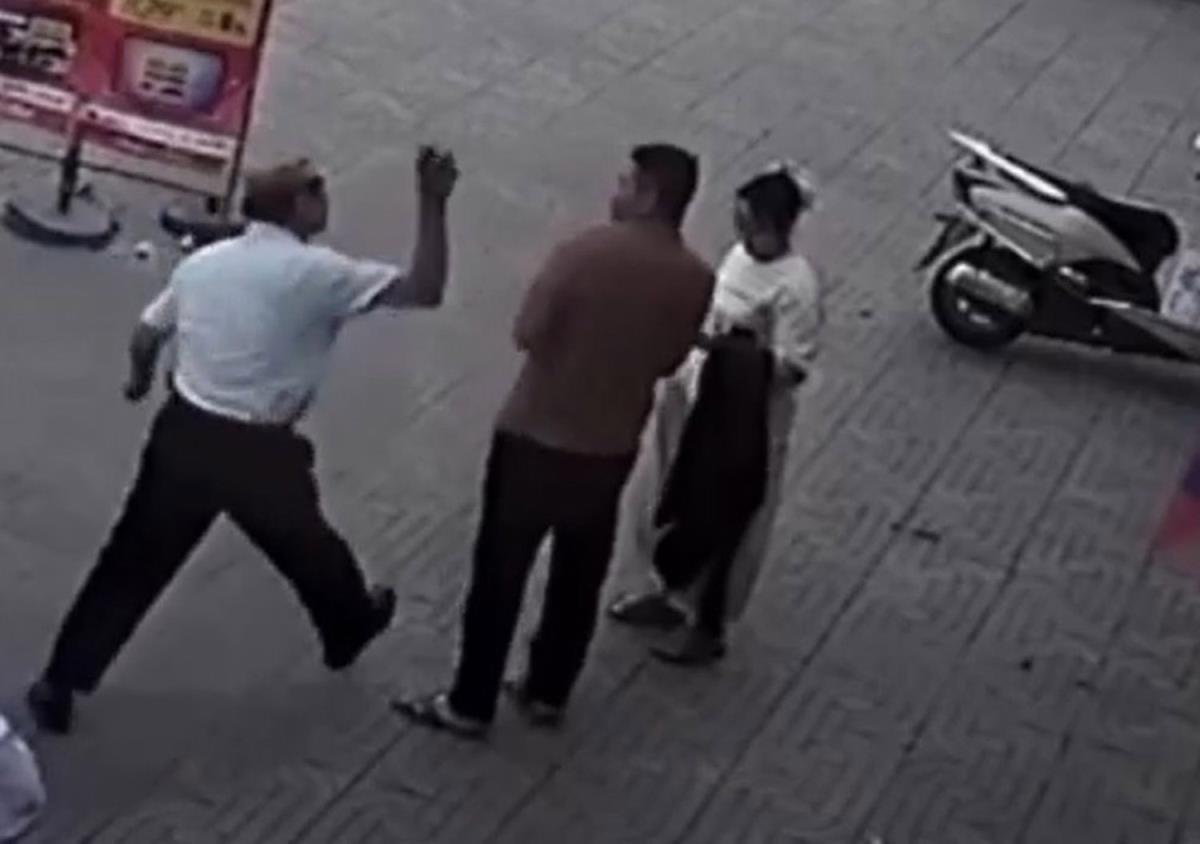 Hình ảnh camera ghi lại thời điểm tài xế Tuấn cầm gạch tấn công anh L.